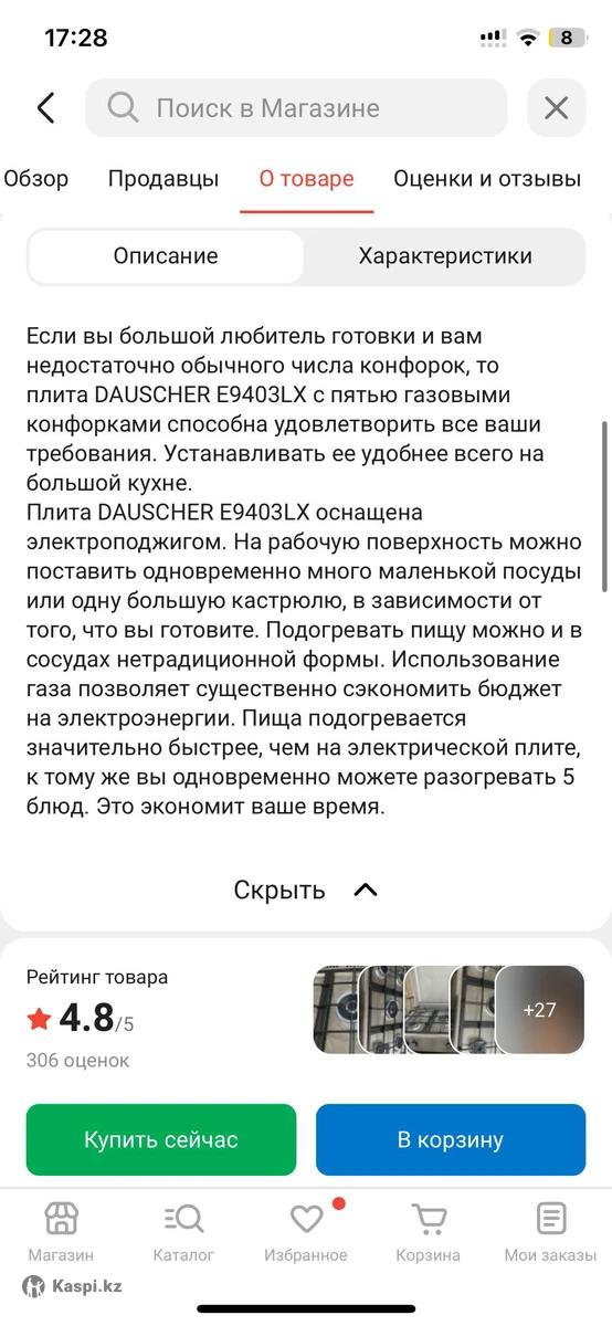 Если вы большой любитель готовки и вам недостаточно обычного числа конфорок, то плита DAUSCHER E9403LX с пятью газовыми конфорками способна удовлетворить все ваши требования. Устанавливать ее удобнее всего на большой кухне. Плита DAUSCHER E9403LX оснащена электроподжигом. На рабочую поверхность можно поставить одновременно много маленькой посуды или одну большую кастрюлю, в зависимости от того, что вы готовите. Подогревать пищу можно и в сосудах нетрадиционной формы. Использование газа позволяет существенно сэкономить бюджет на электроэнергии. Пища подогревается значительно быстрее, чем на электрической плите, к тому же вы одновременно можете разогревать 5 блюд. Это экономит ваше время.