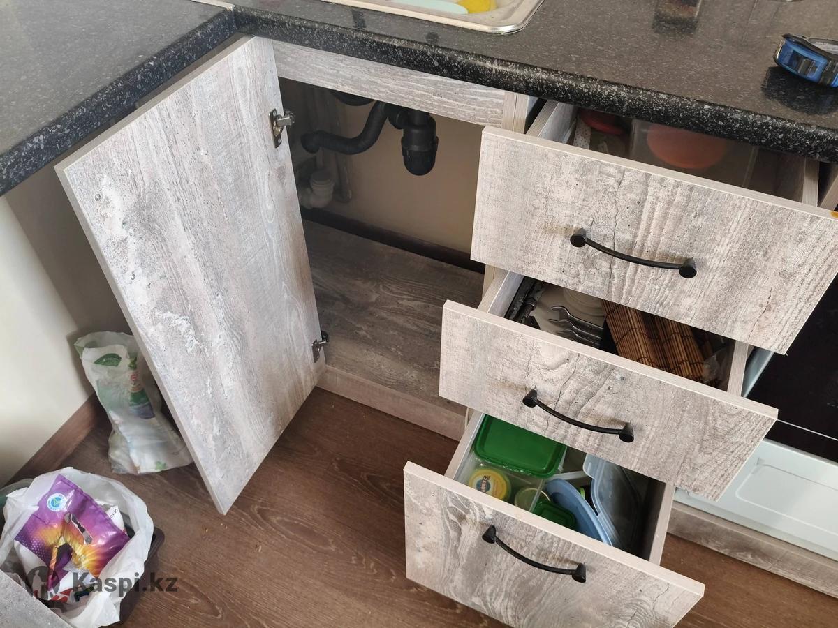 Продается современный кухонный гарнитур в стильном сочетании серого цвета и текстуры дерева. Аккуратно использовался, выглядит стильно и аккуратно. 📐 Размеры: Левая сторона — 196 см Правая сторона — 126 см Бутылочница — 26 см Верхние шкафы — 202 см Высота столешницы — 96 см!!! ✔ Угловая планировка ✔ Вместительные шкафы и ящики ✔ Удобная бутылочница 26 см ✔ Верхний шкаф со стеклянной вставкой ✔ Открытые боковые полки ✔ Качественная темная столешница ✔ Современная фурнитура Подойдет для квартиры, новостройки или сдачи в аренду. Состояние хорошее, без серьезных дефектов.