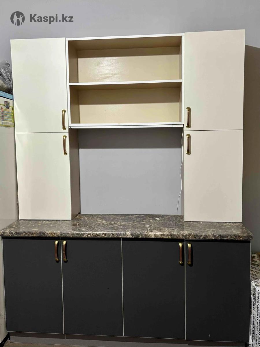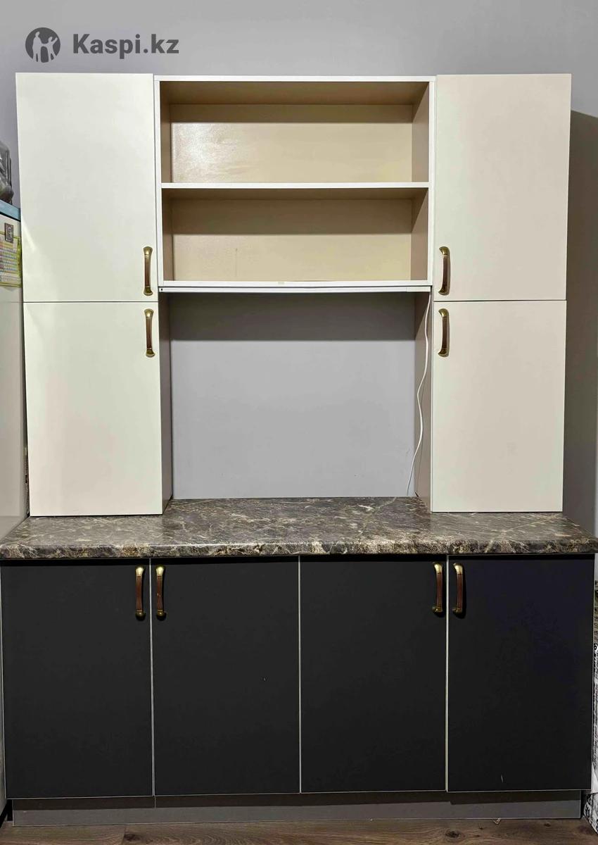 Нижняя часть: 1638147 Верхняя часть: 16313227 Стильный и практичный гарнитур: светлый верх и темный низ, красивая столешница под камень, удобные шкафы и полки. Аккуратный, без запахов и серьезных дефектов. Подойдет для квартиры или аренды - готов к использованию. Самовывоз с района ЦУМа. Торг уместен.