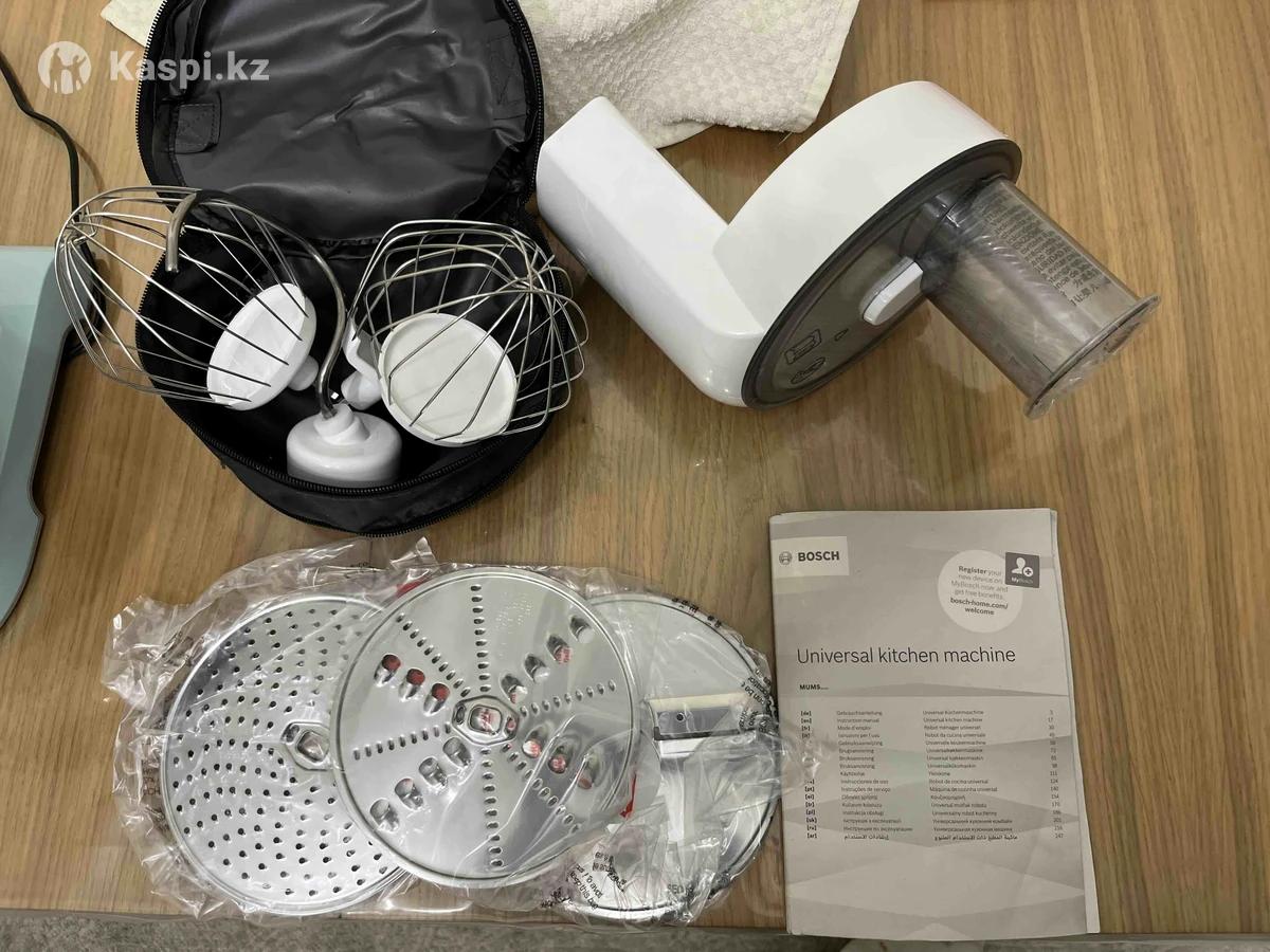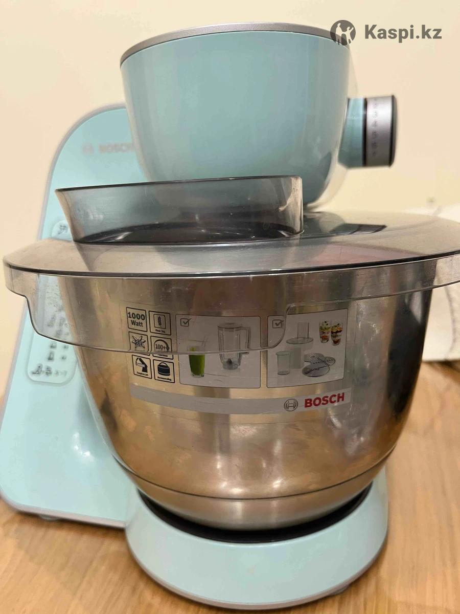 Продам кухонный комбайн Bosch MUM5 Основные функции: -Замешивание теста -Взбивание -Перемешивание ингредиентов -Терка и шинковка -Нарезка фруктов и овощей на равномерные кубики. Можно приобрести дополнительные насадки: соковыжималка, мясорубка. Пользовались всего 3 раза, месили тесто. Нарезку не делали. Цена на каспи от 169.000 тг, по цене договоримся.