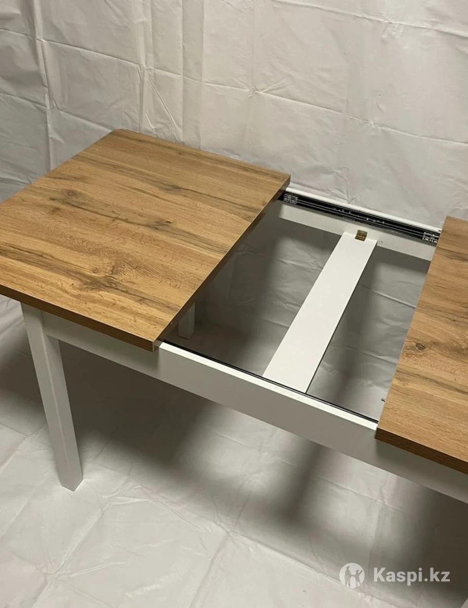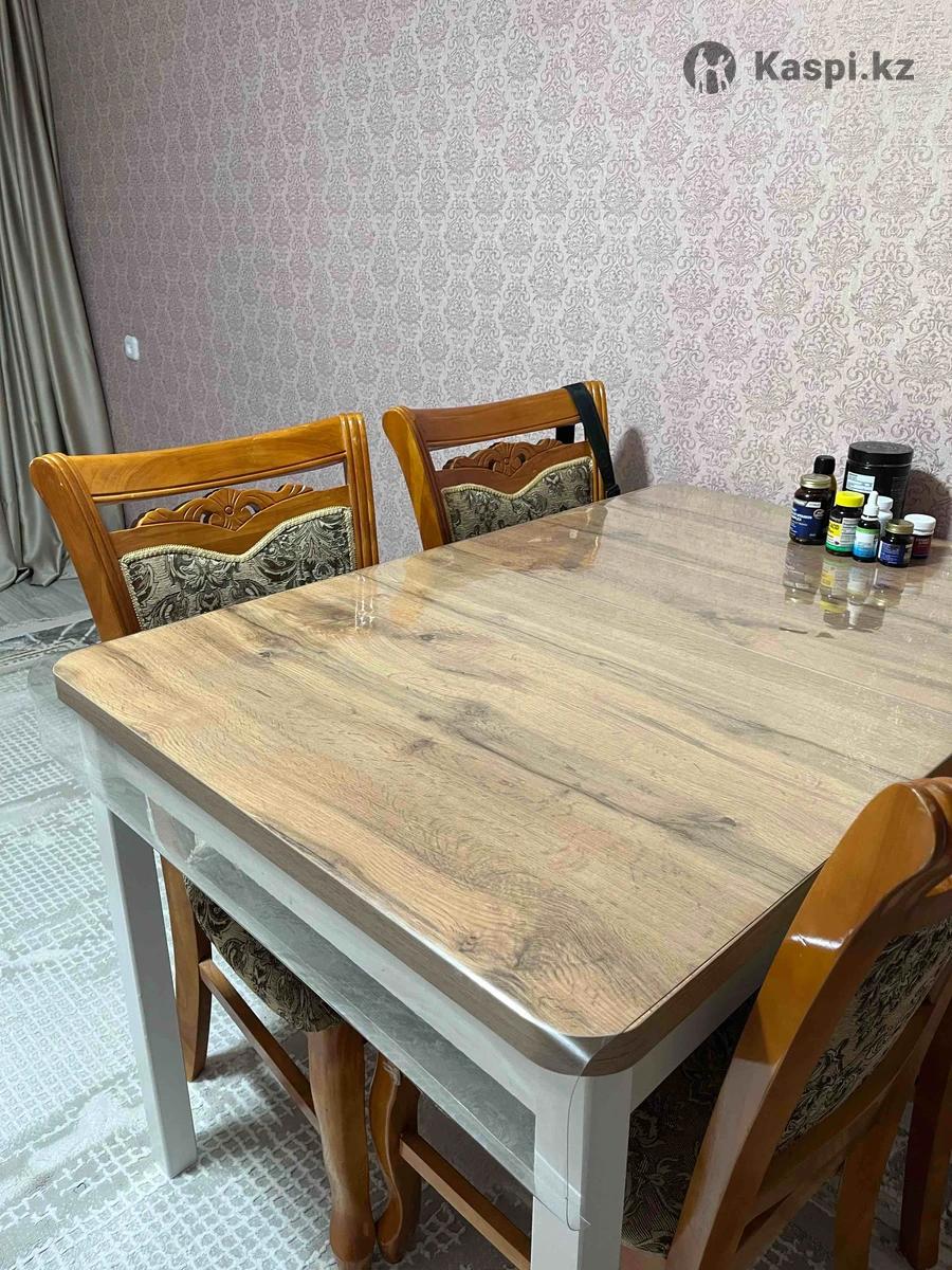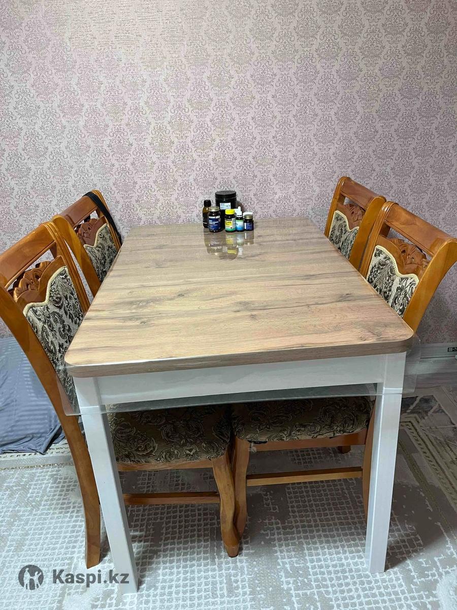 Покупали 6 месяцев назад, в идеальном состоянии, в подарок идет 4 стула и защитная пленка. Стол раздвижная можно на 6, и на 12 человек