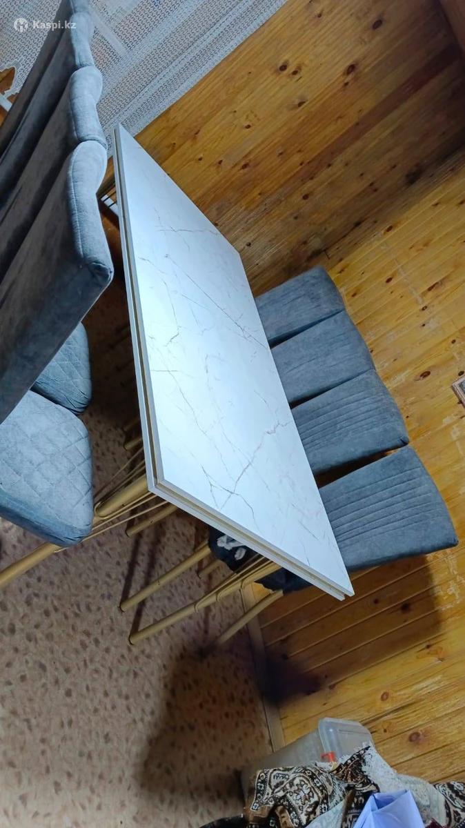 ТОРГ ЕСТЬ! Стол + 8 стульев (90×200 см) в хорошем новом состоянии Покупала за 200.000 тенге , продаю за 120 000 тенге. Использовалась 6 месяцев в идеальном состоянии. Причина продажи: переезд в другой дом. Продаётся большой обеденный стол размером 90×200 см вместе с 8 стульями. Отлично подойдёт для большой семьи или просторной кухни/столовой. Стол устойчивый, удобный, с красивой столешницей под мрамор. Стулья мягкие, комфортные, обивка в хорошем состоянии. Состояние: хорошее, всё аккуратное и полностью пригодно для использования. Подойдёт для: кухни столовой дачи большой семьи