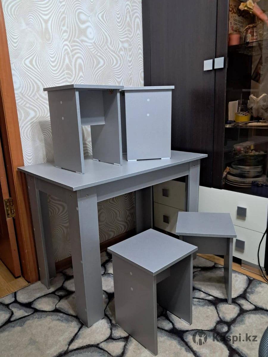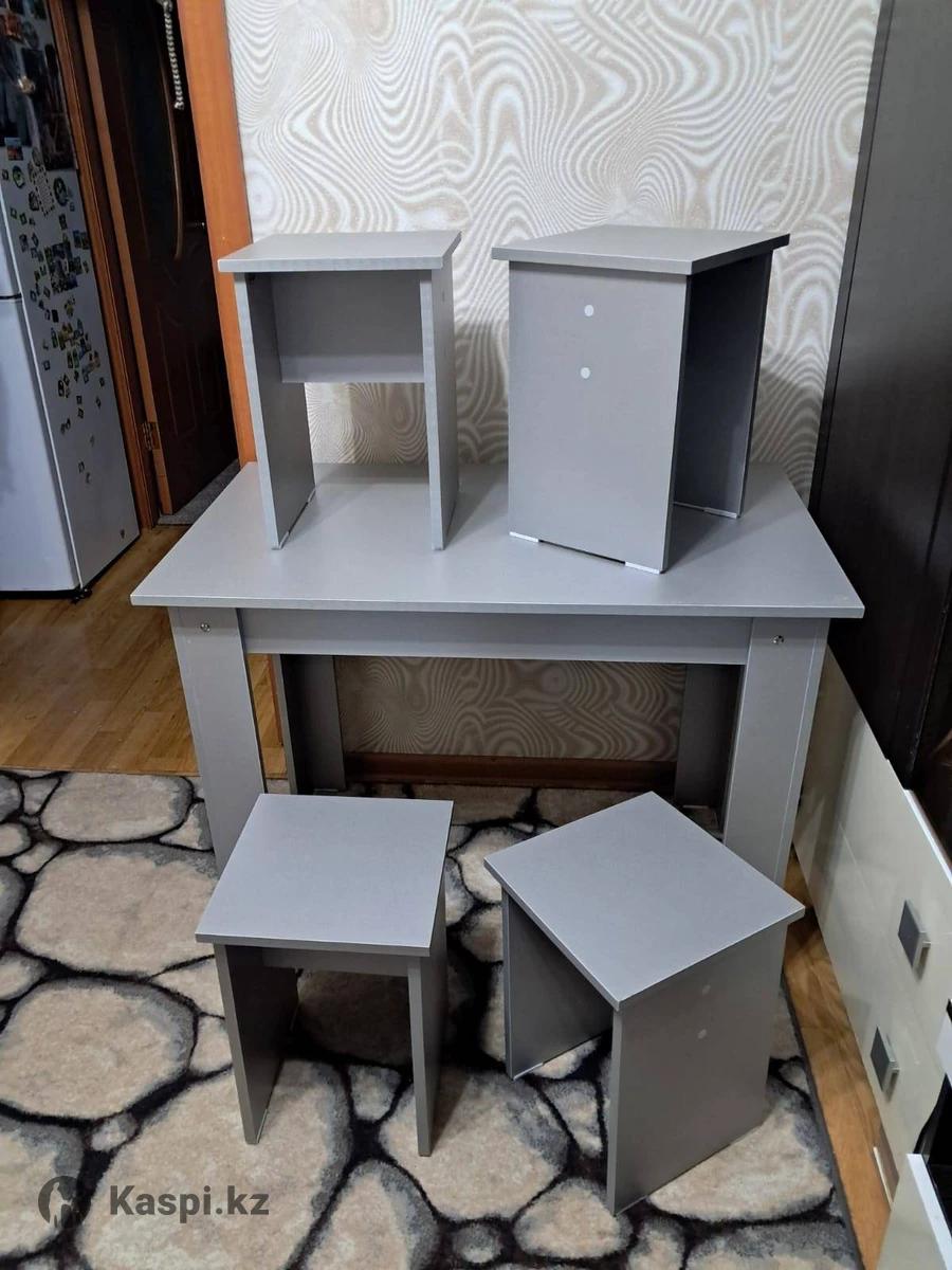 Продам новый кухонный стол с четырьмя табуретками изготовлен из ЛДСП цвет на фото. Доставка по городу по договоренности от 2.000 тенге вечером