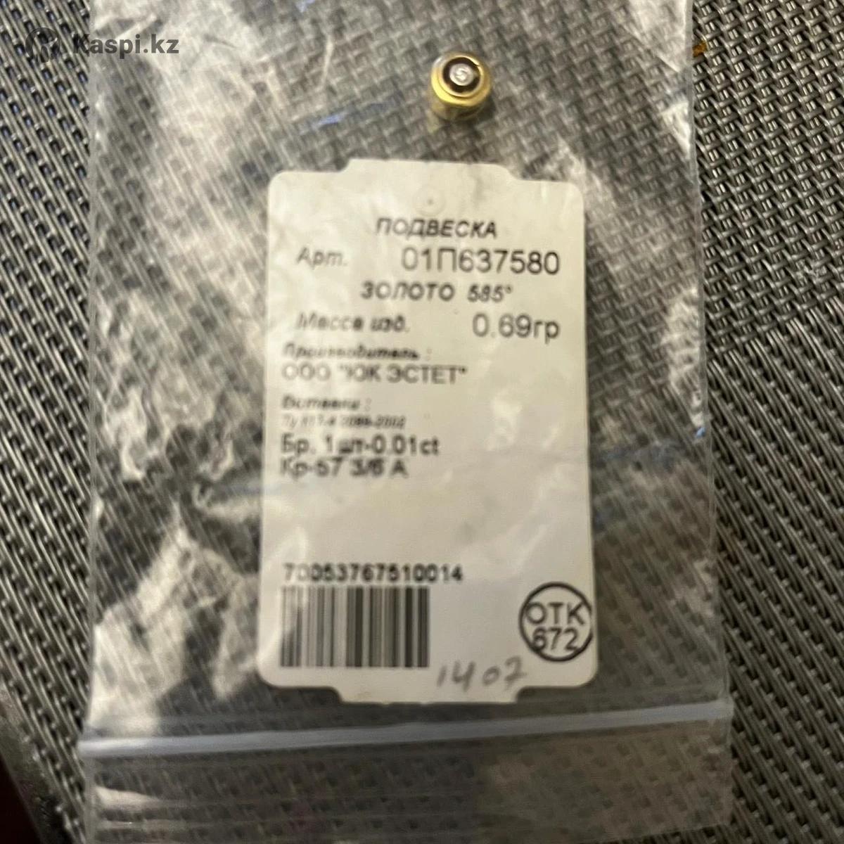 Кулон желтое золото, бриллиант, Эстет, 585 проба (вес до 1 гр), бирка родная, возможен спектральный анализ в ломбарде без повреждения изделия