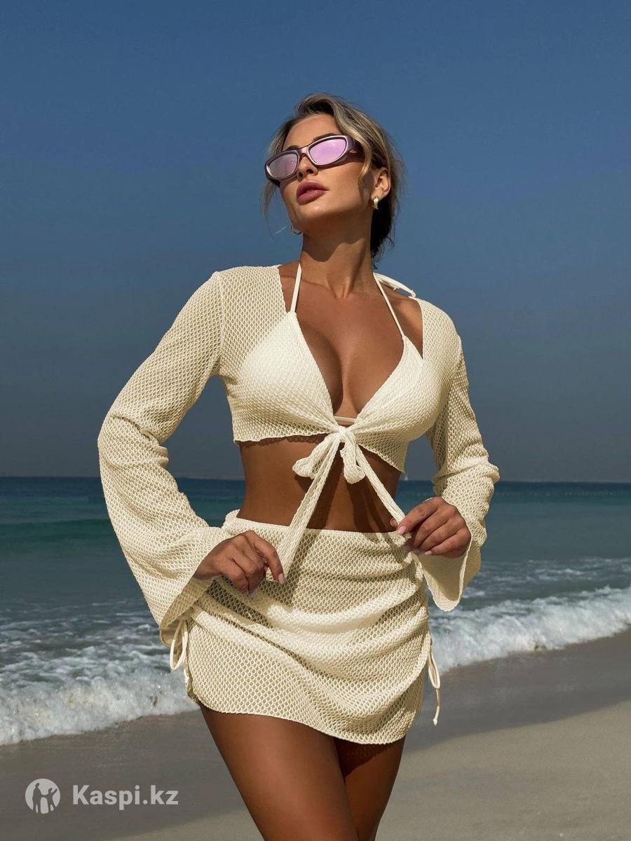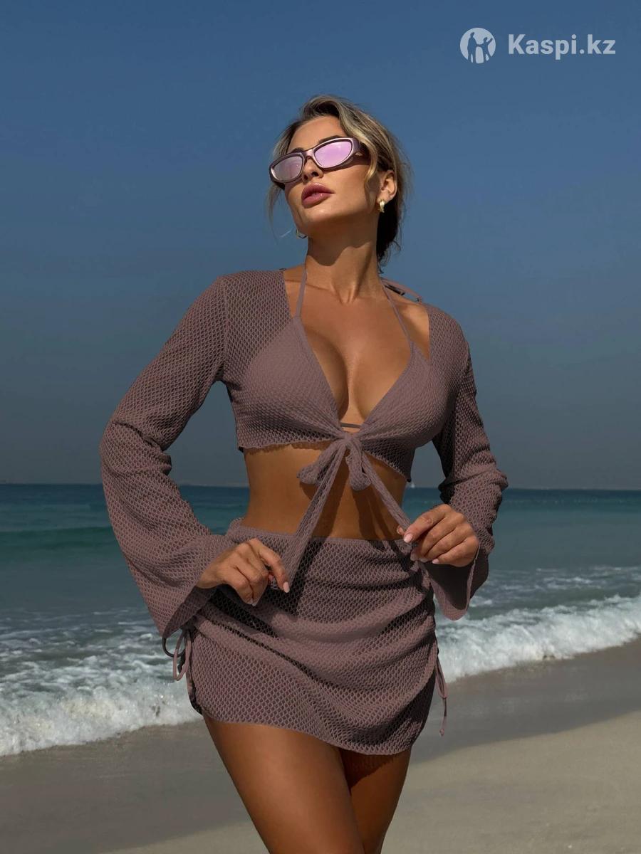 Купальник 4ка состоит из бюстгальтер треугольник, трусики, бандо и юбка