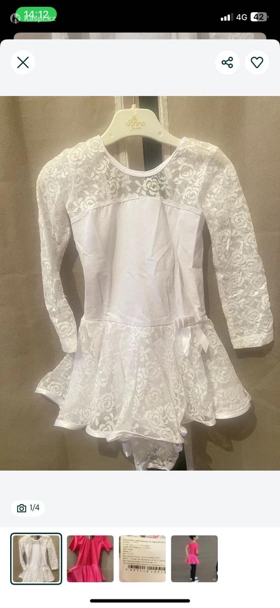 Белый купальник для худ.гимнастики в отличном состоянии. Размер 32. Рост 122-128. Для 5-6 лет Розовый купальник с небольшим дефектом (прожгла утюгом) на 6-7 лет. Цена 3000 тг за оба купальника
