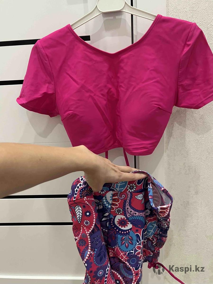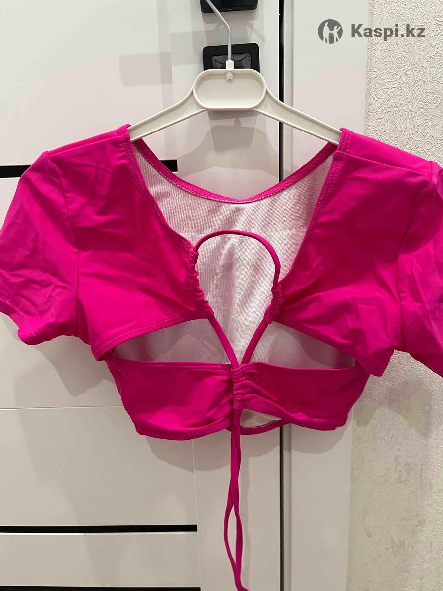 Двойка, топ и шорты на высокой посадке, размер маленький на XS-S, на небольшую грудь максимум 75. Надевался 1 раз за границей. Встроенные чашки. Можно девочке подростку. Чистый. Качество отличное. Ткань приятная. Как новый. Цена 3000 без торга. Ул. А.Болекпаев