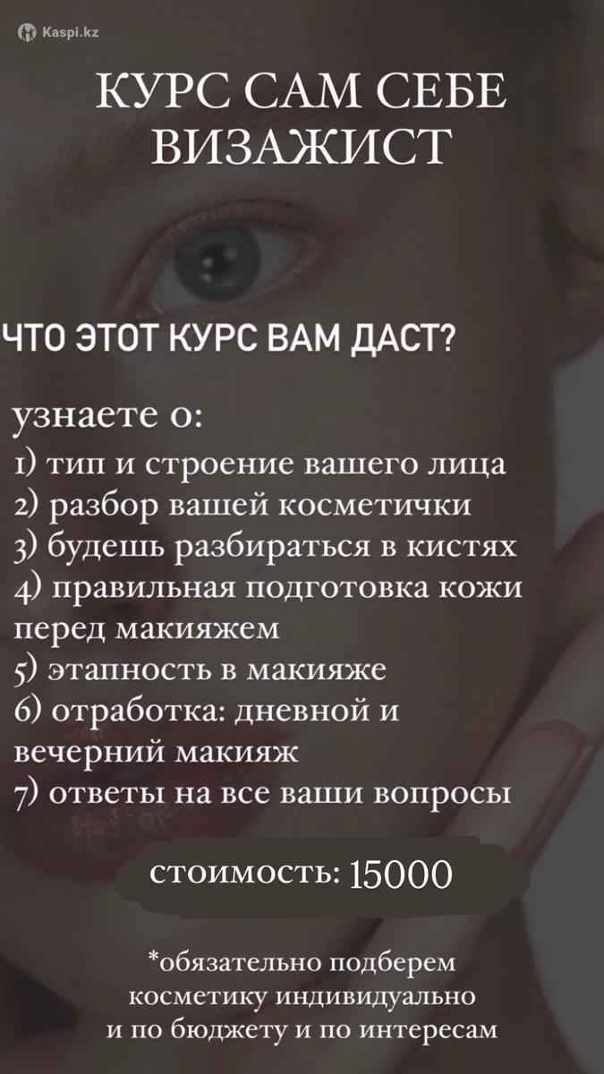 Курс « сам себе визажист » если ты хочешь краситься профессионально и меньше тратить время на макияж, то тебе ко мне✨ обучение длится 2 дня стоимость обучения: 15000тг оффлайн обучение