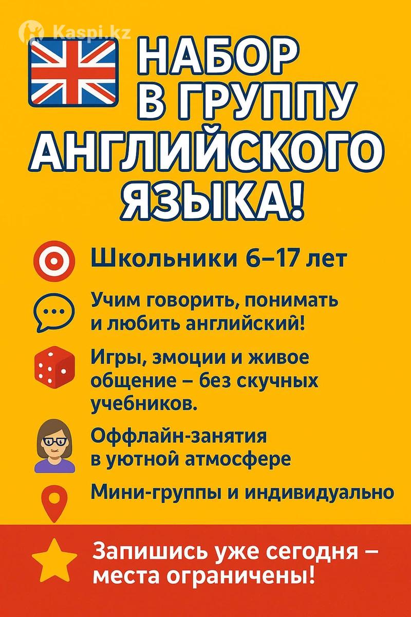 🚀 Хотите, чтобы ваш ребенок заговорил на английском быстро и уверенно? Это реальность — и она ближе, чем вы думаете! ⚡ Интенсивные живые уроки — результат уже после первого месяца! ⚡ Индивидуальный подход и веселые задания, которые вдохновляют на успех. ⚡ Для детей от 6 до 17 лет — каждый найдет свой уровень. 🎯 Не ждите — старт группы уже скоро! 🔥 Запишитесь сегодня и получите бесплатное пробное занятие! 📲 Пишите или звоните: ⚠️ Мест почти нет — успейте забронировать свое! 🚀 Балаңыздың ағылшын тілінде тез және сенімді сөйлеуін қалайсыз ба? Бұл шындық — ол ойлағаныңыздан да жақын! ⚡ Жанды және нәтижелі сабақтар — алғашқы айдан-ақ өзгеріс байқалады! ⚡ Жеке тәсіл және қызықты тапсырмалар — табысқа жетуге шабыт береді. ⚡ 6-17 жас аралығындағы балаларға арналған — әркім өз деңгейін табады. 🎯 Күтпеңіз — сабақтардың басталуы жақын! 🔥 Бүгін тіркеліп, тегін сынақ сабағын алыңыз! 📲 телефон нөмері арқылы жазыңыз немесе қоңырау шалыңыз. ⚠️ Орындар аз — өз орныңызды тезірек белгілеп алыңыз!