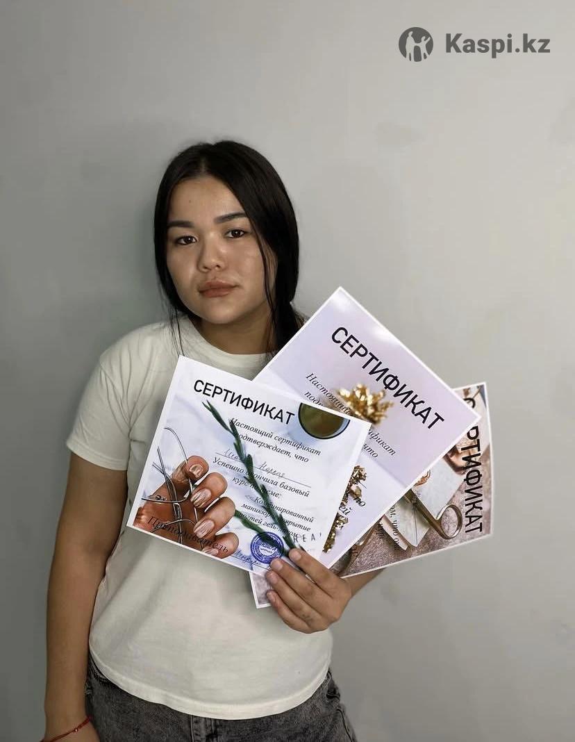 Приглашаю на курсы «Nail Art» Длительность 5 дней. 12 лет стажа. Курс индивидуально в уютной обстановке на дому. Во время обучения материалы и инструменты предоставляется. Отработка на моделях. Действующий сертификат. Стоимость курса 50 000 тг. В ПОДАРОК КУРС ИДЕАЛЬНЫЙ ФРЕНЧ Входит: Теория знакомство с инструментами и материалами; Стерилизация инструментов; Идеальная форма ногтей; Снятия материала; Комбинированный маникюр (фреза+щипцы) Подготовка НП к гель покрытию; Выравнивание ногтевой пластины; Гелевое покрытие (под кутикулой); Легкие дизайны (стразы,фольга,слайдеры); Завершающая покрытия (глянец); Ремонт, до наращивание ноготков; Наращивание ногтей на нижней форме гелем; Смарт педикюр (обработка пяток с диском); Преимущества Свободный график работы; Заработок в месяц от 500 000 тг и больше! Сертификатом можете устроиться в любой салон красоты либо открыть свою студию; ПОСЛЕ МОЕГО ОБУЧЕНИЯ, ПЕРЕУЧИВАТЬСЯ НЕ ПРИДЁТСЯ адрес: остановка Березка ЖК Астана