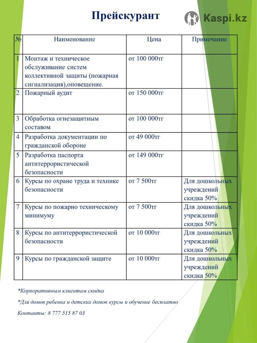 Центр гражданской безопасности Казахстана (ЦГБК) проводит обучение, инструктажи и проверку знаний по безопасности и охране труда,пожарной,антитеррористической безопасности,гражданской защите и ЧС. для организаций всех форм и собственности. ✅ Поченьу выбирают нас: Удобная форма обучения онлайн и офлайн— без отрыва от работы. Все программы утверждены и соответствуют требованиям законодательства РК. Опытные преподаватели с практическим стажем более 10 лет. Официальные документы (удостоверения, сертификаты,протоколы, журналы). Паспорт антитеррористической безопасности и документация по ГО и ЧС. Индивидуальный подход и скидки для корпоративных клиентов. 📞 Свяжитесь с нами уже сегодня — поможем пройти обучение быстро, удобно и по выгодным ценам. Безопасность начинается с знаний!
