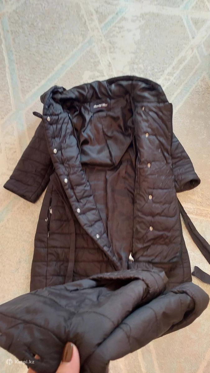 Куртка черная, зимняя,легкая,прошитая. Не комкается после стирки, длина до колен, рукава отстегиваются, состояние нормальное. Мех отсутствует, потайные карманы. Идеально будет и для беременных, в районе живота свободная посадка, доставка через яндекс возможна