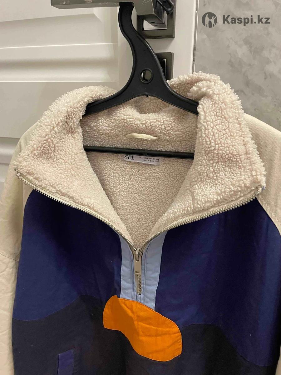 Куртка полу замок из магазина Zara подойдет до 50-го размера с интересным принтом теплое хорошо подойдет на Демисезон внутри идет флис состояние отличное есть карманы