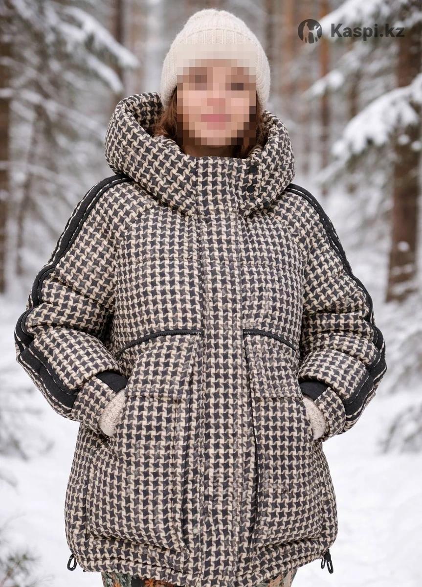 Удлинённаяженская куртка прямого силуэта с регулируемым по капюшоном.объёму Модель на молнию с двумзастёгиваетсяя бегунками, прикрытую ветрозащитной планкой с потайными кнопками. Рукав-реглан на широкой манжете. Боковые карманы с декоративными клапанами имеют диагональный вход. Ширина низа изделия регулируется кулиской. Куртка выполнена из ткани с принтом "гусиная лапка" и утеплена синтетическим наполнителем (биопух).