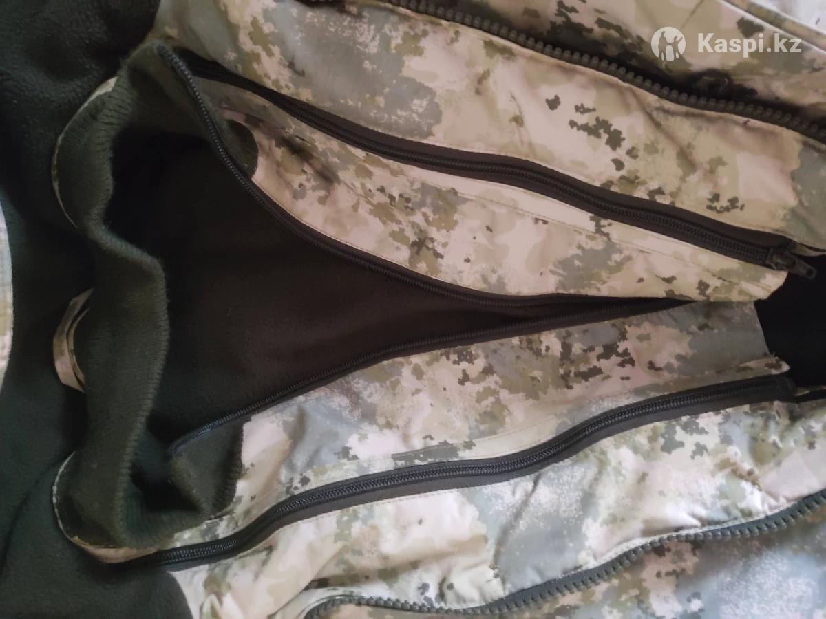 Теплая куртка, много карманов снаружи и внутри. Один внутренний карман непромокаемый. Застёжки на молнии и на пуговицах. Теплый капюшон на заклёпках.