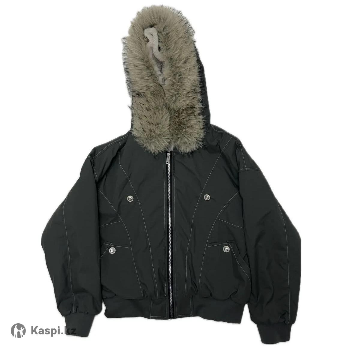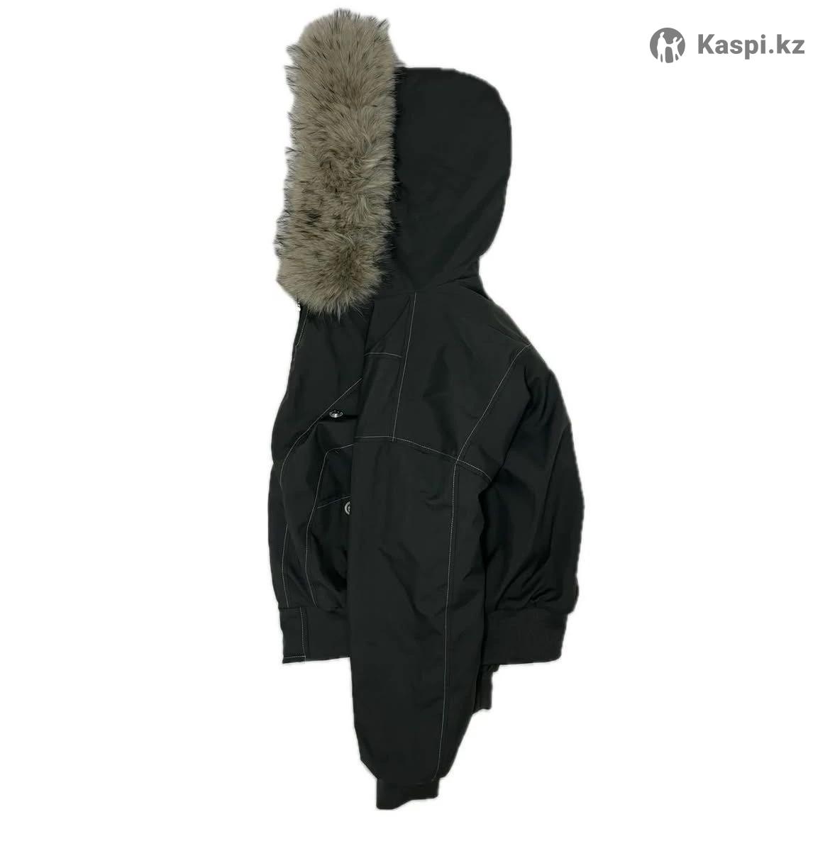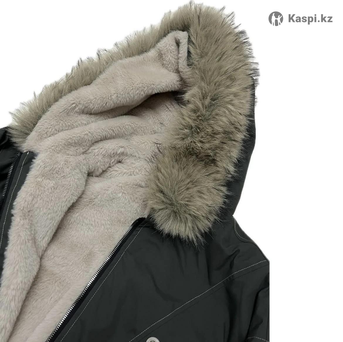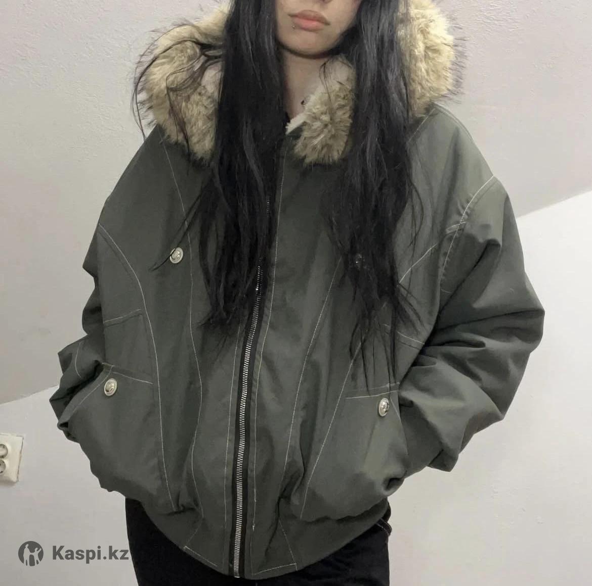Внутри мех, мех на капюшоне отстегивается. Материал похож на плащовку, цвет хакки, носила пару раз. Резинка снизу плотная, от ветра защищает. Мой рост 157. Ношу xs, но размер примерно м