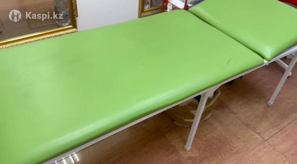 Кушетка зеленого цвета, длина 200 см. Не сборная, поэтому лучше перевозить на грузовике. Есть небольшой дефект, но его можно закрыть простыней/пледом. На первое время хорошо подойдет начинающим мастерам