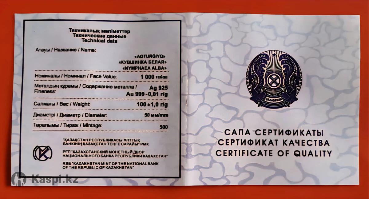 Серебряная монета Белая кувшинка Банковская Без замечаний . Тираж 500 шт