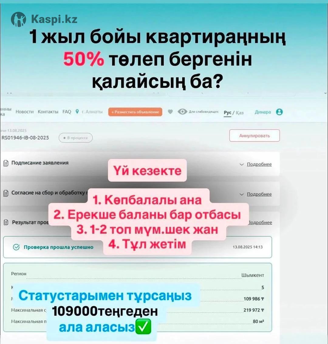 Мемлекет тұрып жатқан квартираңыздың 50% төлеп береді. Кв субсидия жасап беремін