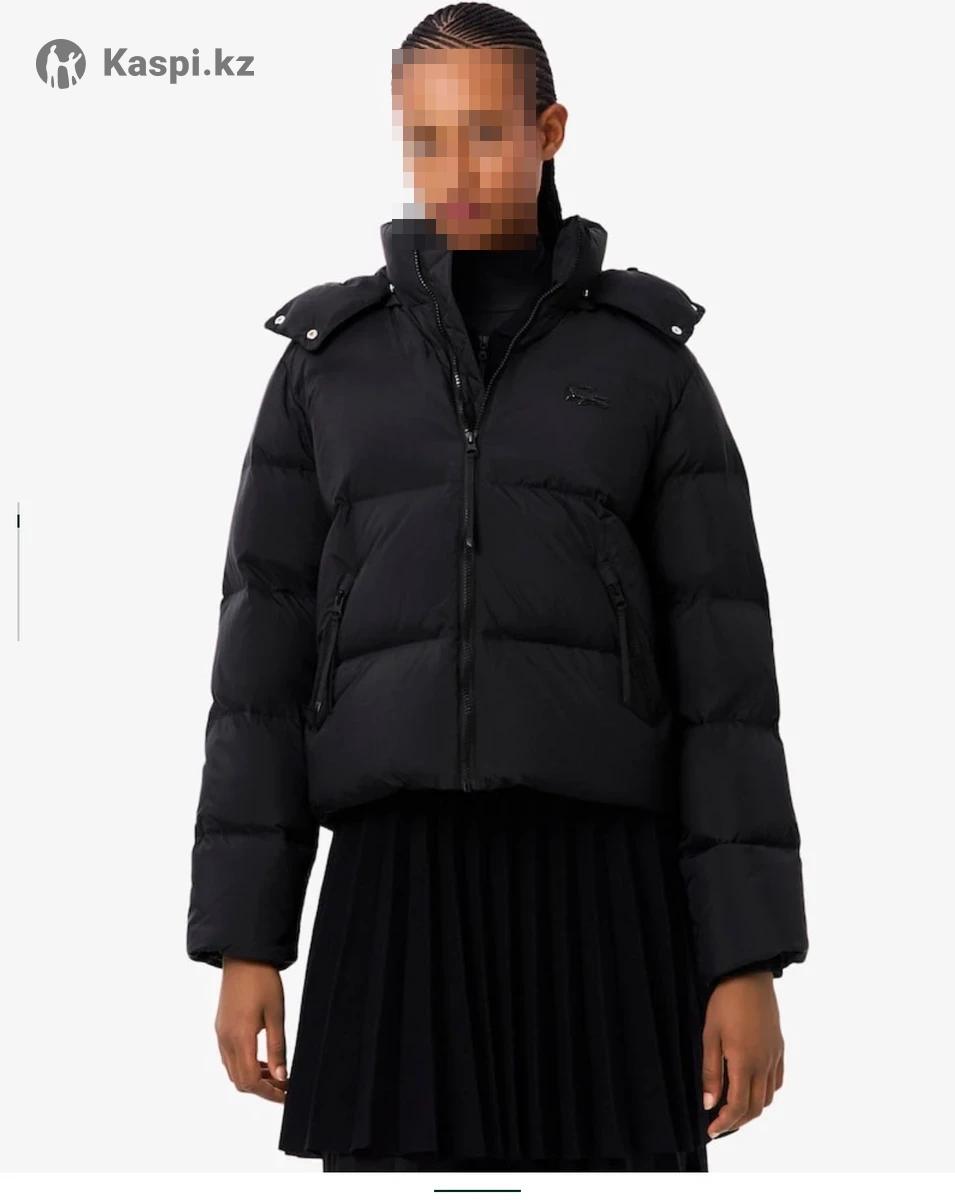 Оригинальная куртка от бренда Lacoste. Размер 36. Женская. Можно и подросткам. Цвет черный. С капюшоном. Капюшон съемный.