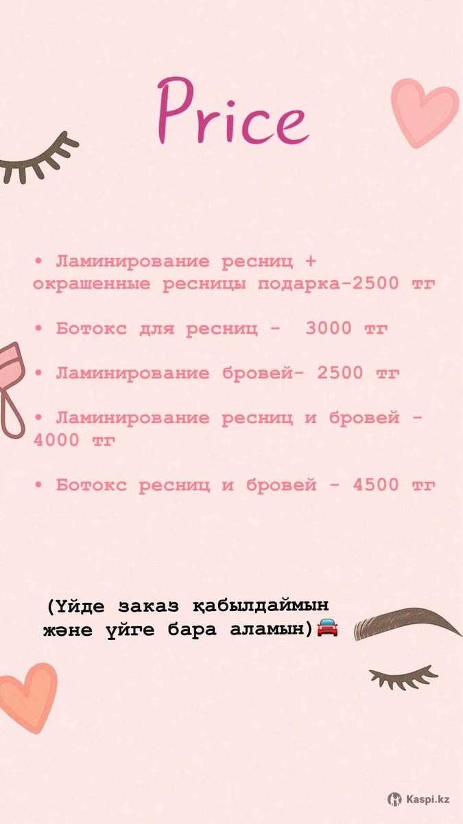 Ламинирование ресниц және бровей Алматы, Боралдай (Водник ауданы) Табиғи сұлулықты айқындаймын Зиянсыз, нәтижесі ұзаққа сақталады Әдемі, ұқыпты жұмыс Бағалары 2500 тенгеден бастап (Үйге келіп жасай аламын немесе үйге шақыртуға болады)