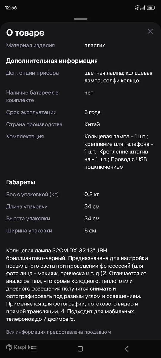 Кольцевая лампа JBH DX-32 32 см (13 дюймов) черного цвета. Она предназначена для обеспечения превосходного освещения при фотосессиях (макияж, прическа и т. д.). Отличается от аналогичных моделей тем, что позволяет делать снимки с разных ракурсов и в различных условиях освещения, помимо холодного, теплого и дневного света. Подходит для фотосъемки, видеостриминга и прямых трансляций. Совместима с мобильными телефонами с диагональю экрана до 7 дюймов. (Жасап тұр, тек кольцовый лампа өзі жұмысқа түсіруге 2-3рет пайдаландым тек Новыйлай тұр)