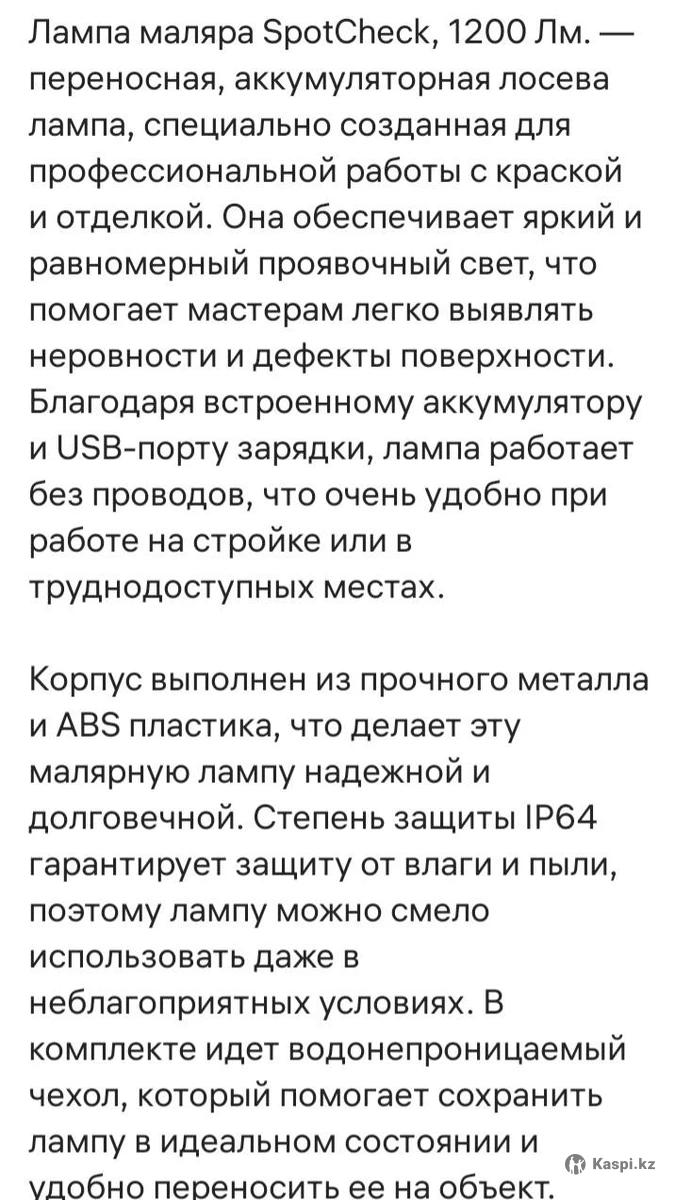 Аккумуляторная лампа проявочная (Лосева).Специально создана для проявки и приемки штукатурных, молярных,шпатлевочных и.т.д работ на строящихся и готовых объектах (квартирах,домах и.т.д). Мощная, компактная лампа с полезной доп.опцией может использоватся как повербанк для подзарядки смартфона.
