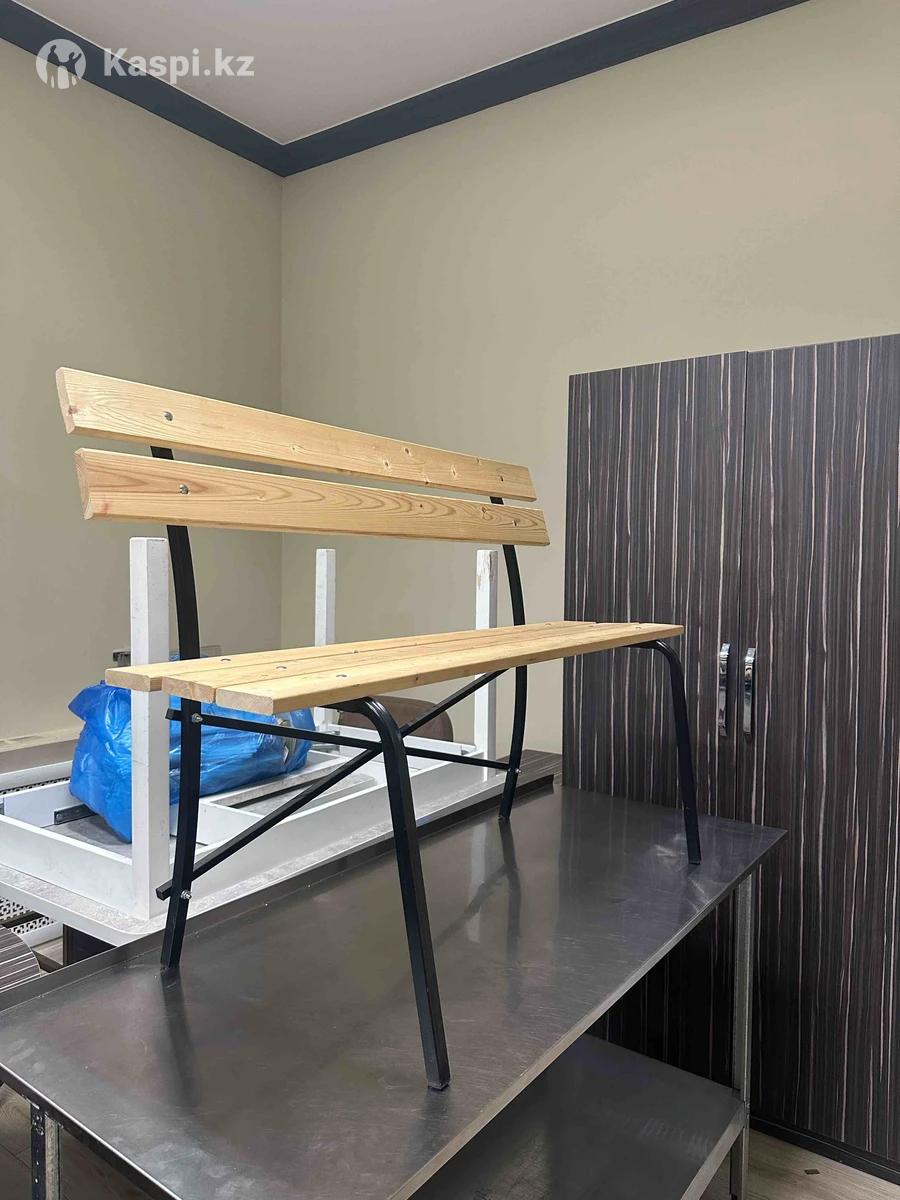 Лавочка деревянная с металлическим каркасом Прочная и удобная лавочка в современном стиле. Сиденье и спинка выполнены из натурального дерева, каркас — из металла с порошковым покрытием. Устойчивая конструкция, аккуратная сборка, без повреждений.