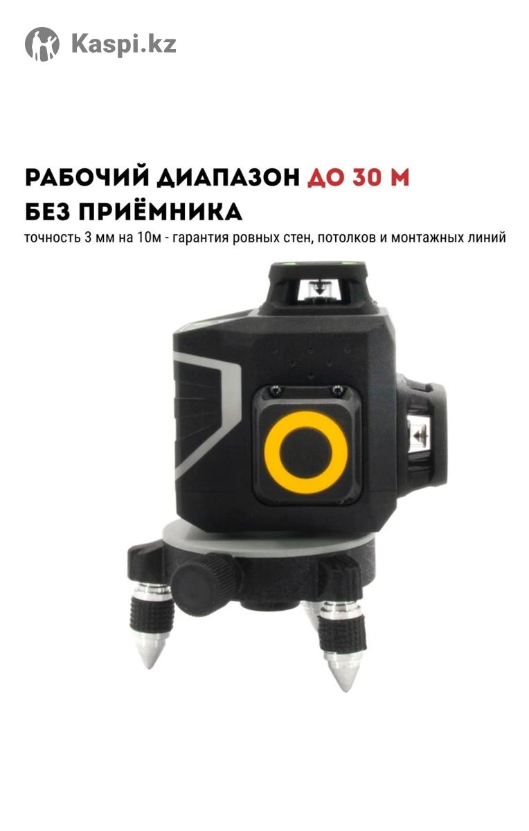 Профессиональный линейный лазерный уровень с тремя лучами и зеленым лазером класса 2. Дальность 30 м. без приемника с полным поворотом 360°.