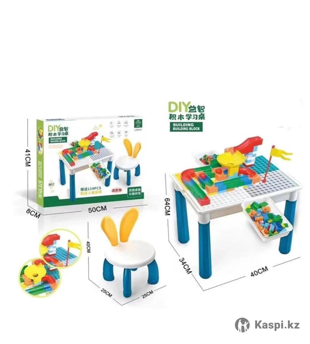 Многофункциональность. На столе можно не только играть в лего, но и писать, рисовать и лепить. Удобное место для хранения конструкторов лего. Кубики лего теперь не валяются по всем детским комнатам, а хранятся внутри стола. Элементы конструктора: Обучают основам моделирования и конструирования. Тренируют интеллектуальные возможности: усидчивость, внимательность и целеустремленность. - Развивают воображение и творческие способности, пространственное и ассоциативное мышление. Для детей от 1 года. 2 ящика для хранения деталей лего 1 стол 1 стул с ушками