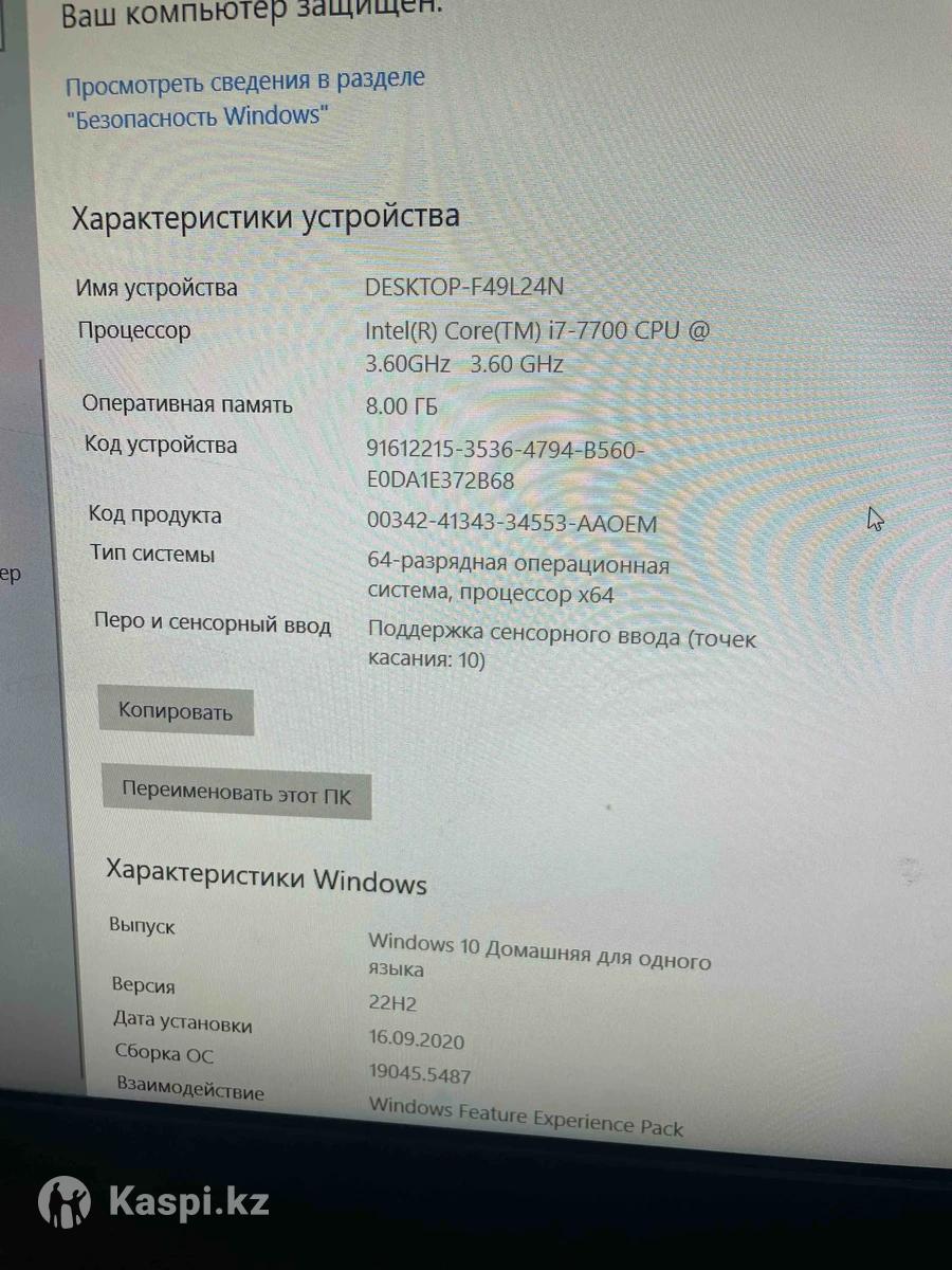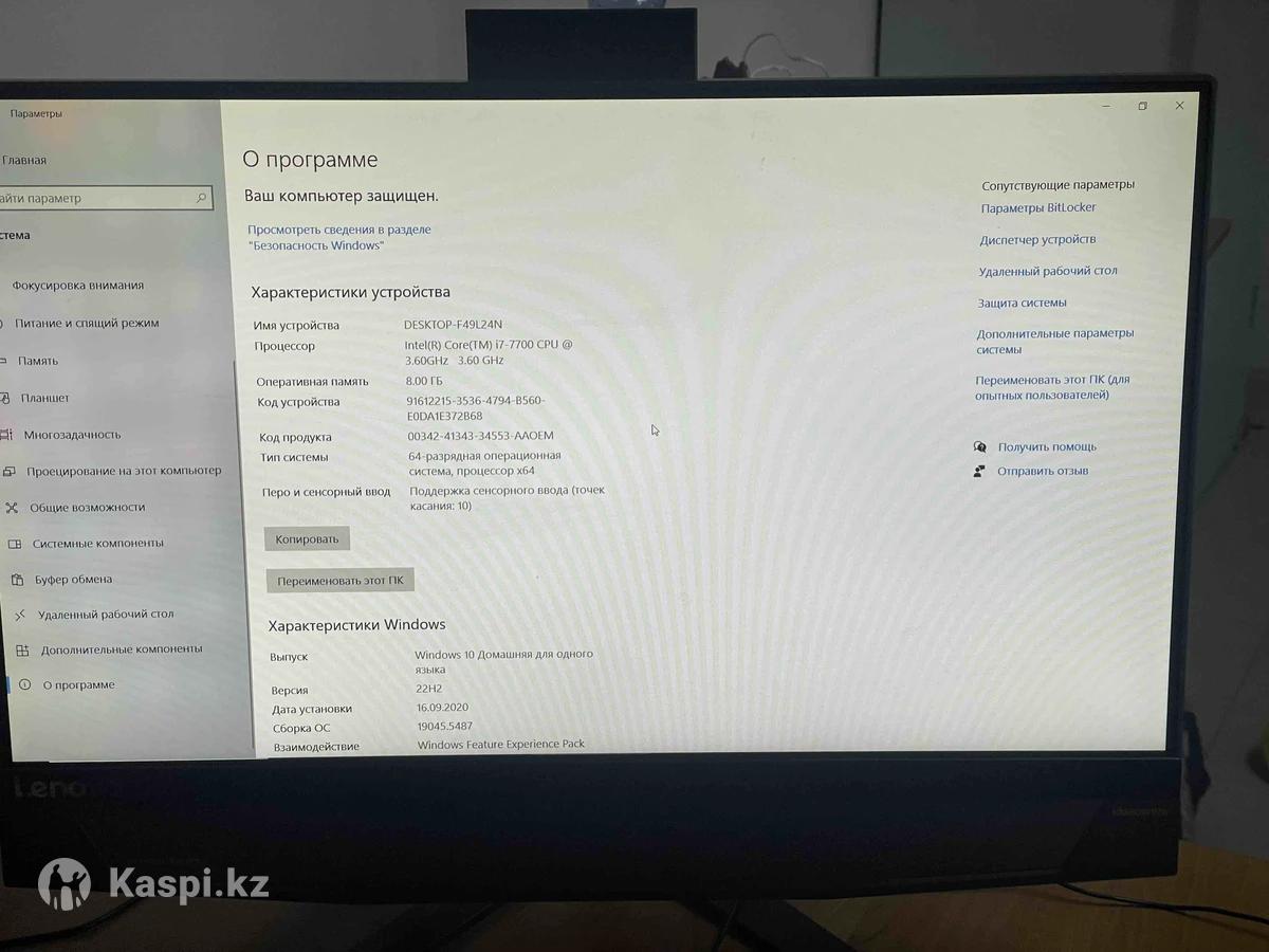 Продаётся премиальный моноблок Lenovo IdeaCentre 720-24IKB с сенсорным экраном и быстрым SSD. Мощный, стильный и компактный компьютер «всё-в-одном» — идеально для дома, офиса, бизнеса, учёбы и работы. Характеристики: • Модель: Lenovo IdeaCentre AIO 720-24IKB • Экран: 24″ Full HD сенсорный (10-point touch) • Процессор: Intel Core i7-7700 (4 ядра, до 3.6 GHz) • ОЗУ: 8 GB • Накопители: • SSD 256 GB (быстрая работа) • HDD 500 GB (для хранения) • Графика: Intel HD Graphics • Аудио: Dolby Audio (качественный звук) • Камера и микрофон: есть • Wi-Fi / Bluetooth: есть • ОС: Windows 10 лицензия Состояние: • Полностью исправен • Быстрый и тихий • Без ремонтов • Аккуратный внешний вид • Готов к работе Комплектация: • Моноблок Lenovo • Кабель питания Премиальная серия Lenovo с металлической подставкой и сенсорным экраном. Отличный вариант для офиса, бухгалтерии, дома, кассы, обучения и мультимедиа.