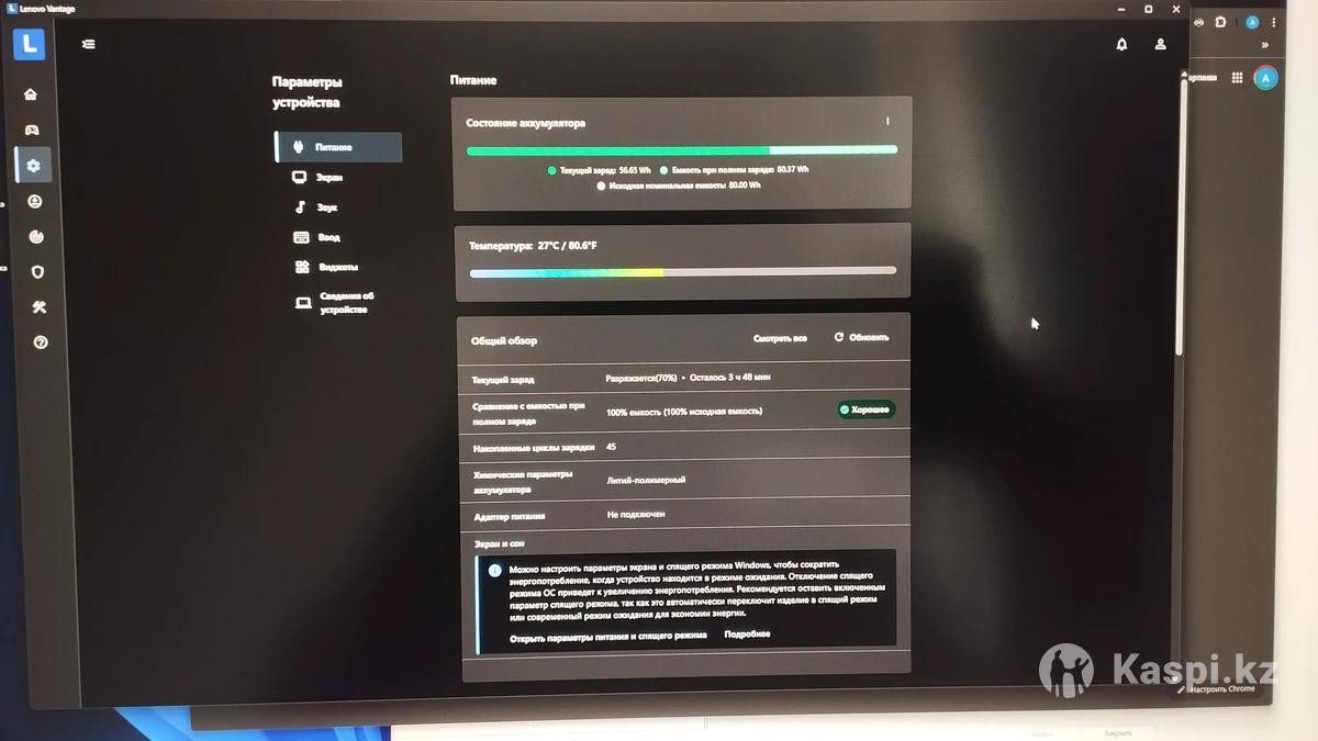 Lenovo Legion Slim 5 16APH8 (82Y9000YRK). Экран: 16" WQXGA (2560x1600), IPS, 165 Гц, 100% sRGB, поддержка G-SYNC и FreeSync. Процессор: AMD RyzenTM 5 7640HS (6 ядер, 12 потоков, частота до 5.0 ГГц) архитектура Zen 4. Видеокарта (дискретная): NVIDIA® GeForce RTXTM 4060 8GB GDDR6. Видеокарта (встроенная): AMD RadeonTM 760M. Оперативная память: 16 ГБ DDR5-5600 МГц. Накопитель (SSD): 1 ТБ M.2 NVMe PCIe 4.0 (SK Hynix). Аккумулятор: Емкостью 80 Втч. Состояние идеальное (износ 0%, всего 45 циклов зарядки). Операционная система: Windows 11 Pro. Комплект: Ноутбук и оригинальное зарядное устройство на 230 Вт. Гарантия: Официальная гарантия Lenovo активна, осталось около 10 месяцев. Ноутбуком почти не пользовался, хотел для изучения программирования но оказалось сложно для меня) Продаю потому что нужны деньги. Цену поставил ниже всех чтобы продать побыстрее, скидок нет. За ноутом приехать можете на Гоголя 86 Пишите пожалуйста в мессенджер, звонки не вижу.