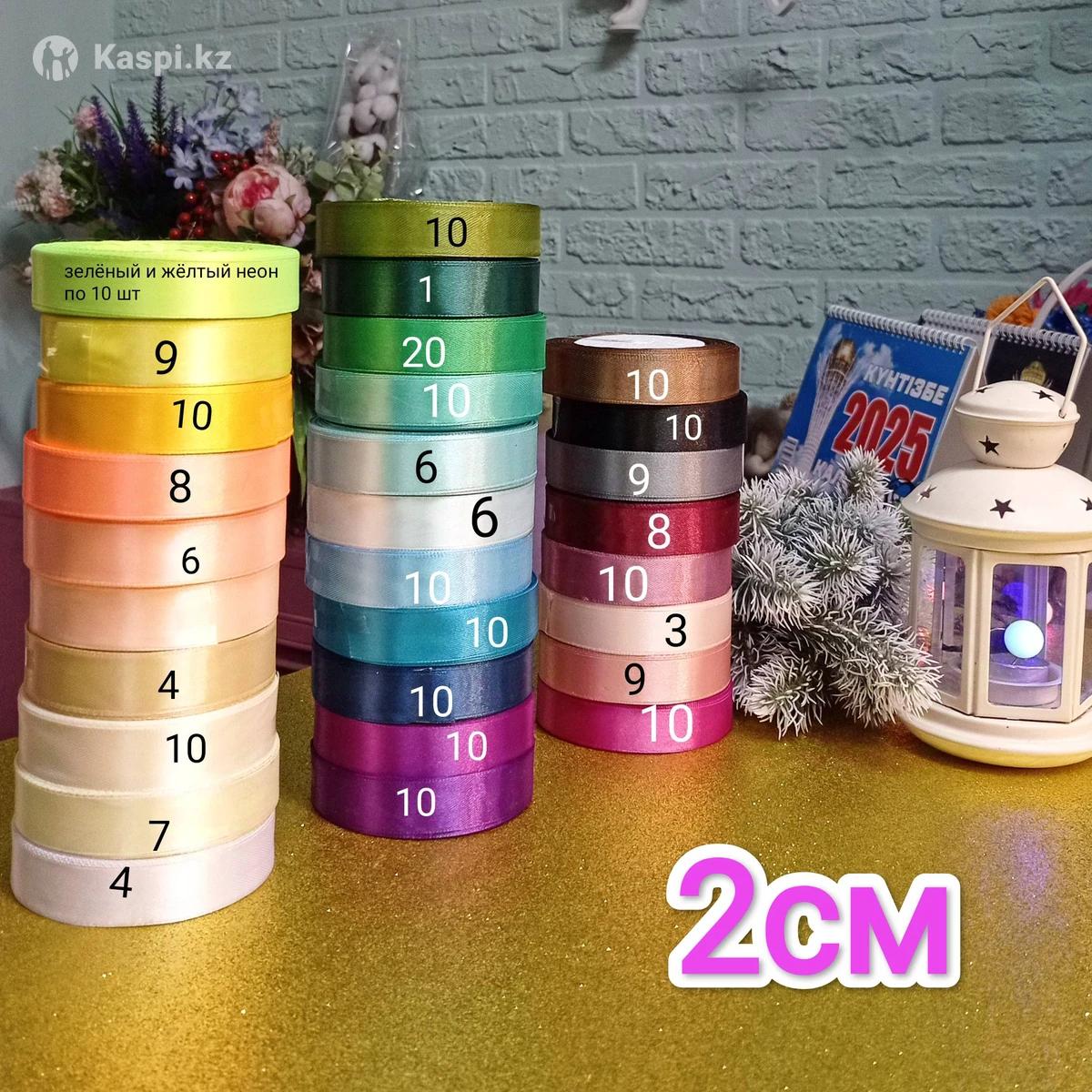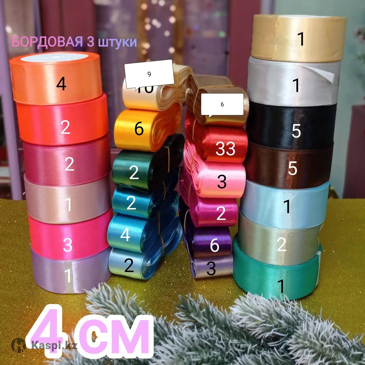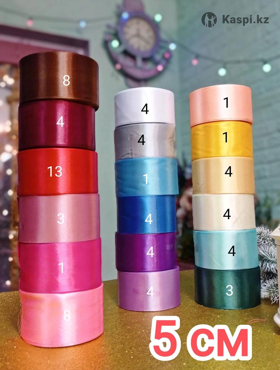Ленты атласные Ширина: 0,5; 1см, 2, 4 и 5см Длина 20-23м Расцветки Разные Цены: 500, 600, 700, 900 и 1200 тг