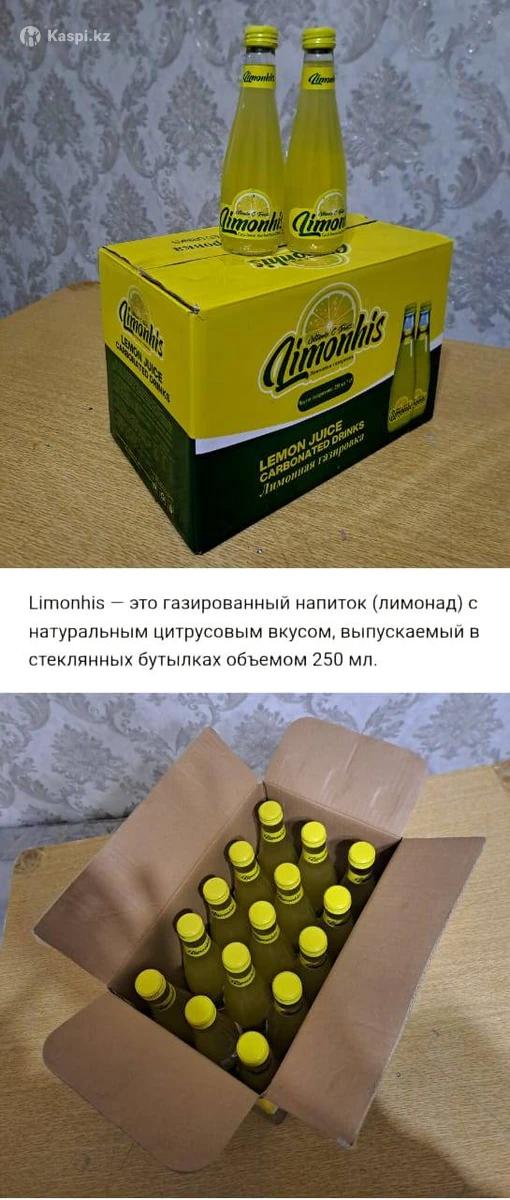 Газированный напиток Limonhis с витамином С /лимонад/ с цитрусовым вкусом, выпускаемый в стеклянных бутылках объёмом 250 мл. В упаковке 15 штук.