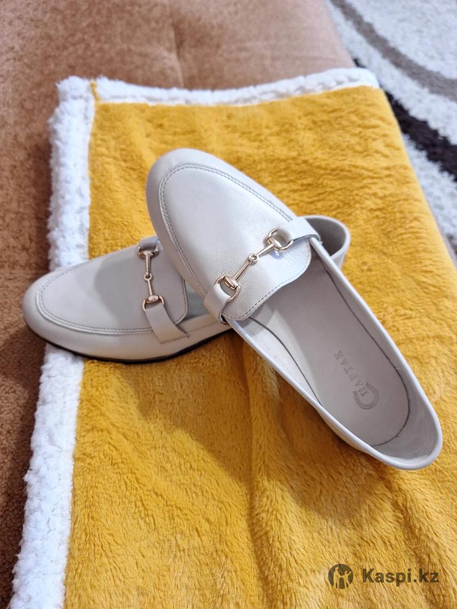 Лоферы светло бежевого цвета, натуральная кожа, подклад так же из натуральной кожи, подошва толщиной 0,7 см, каблук 1,5 см. Длина подошвы в самой длинной части 25,5 см.