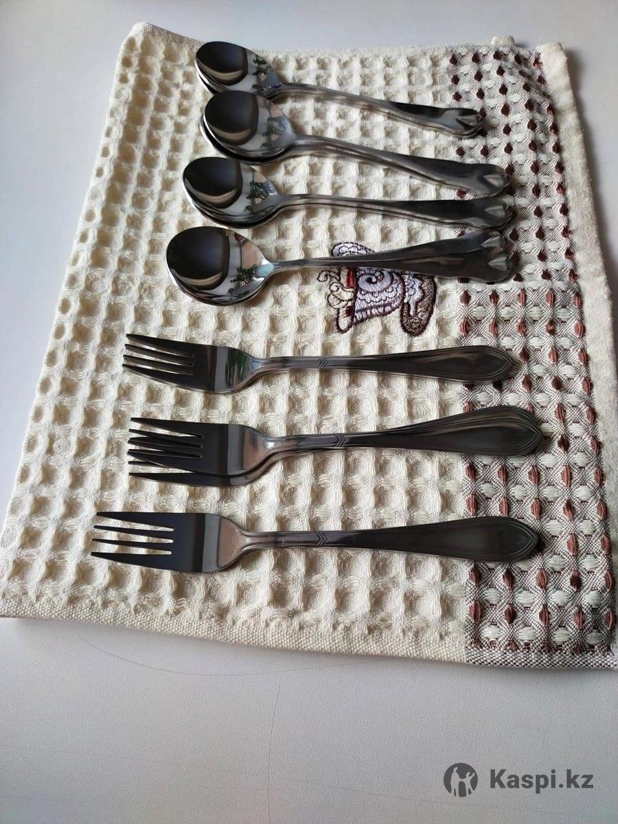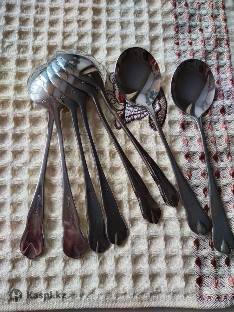 Столовые приборы : ложки суповые 8 штук, вилки 6 штук. Цена 700 тенге за штуку. Б/У в отличном состоянии.