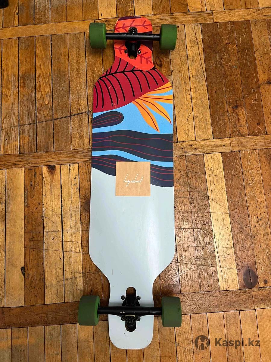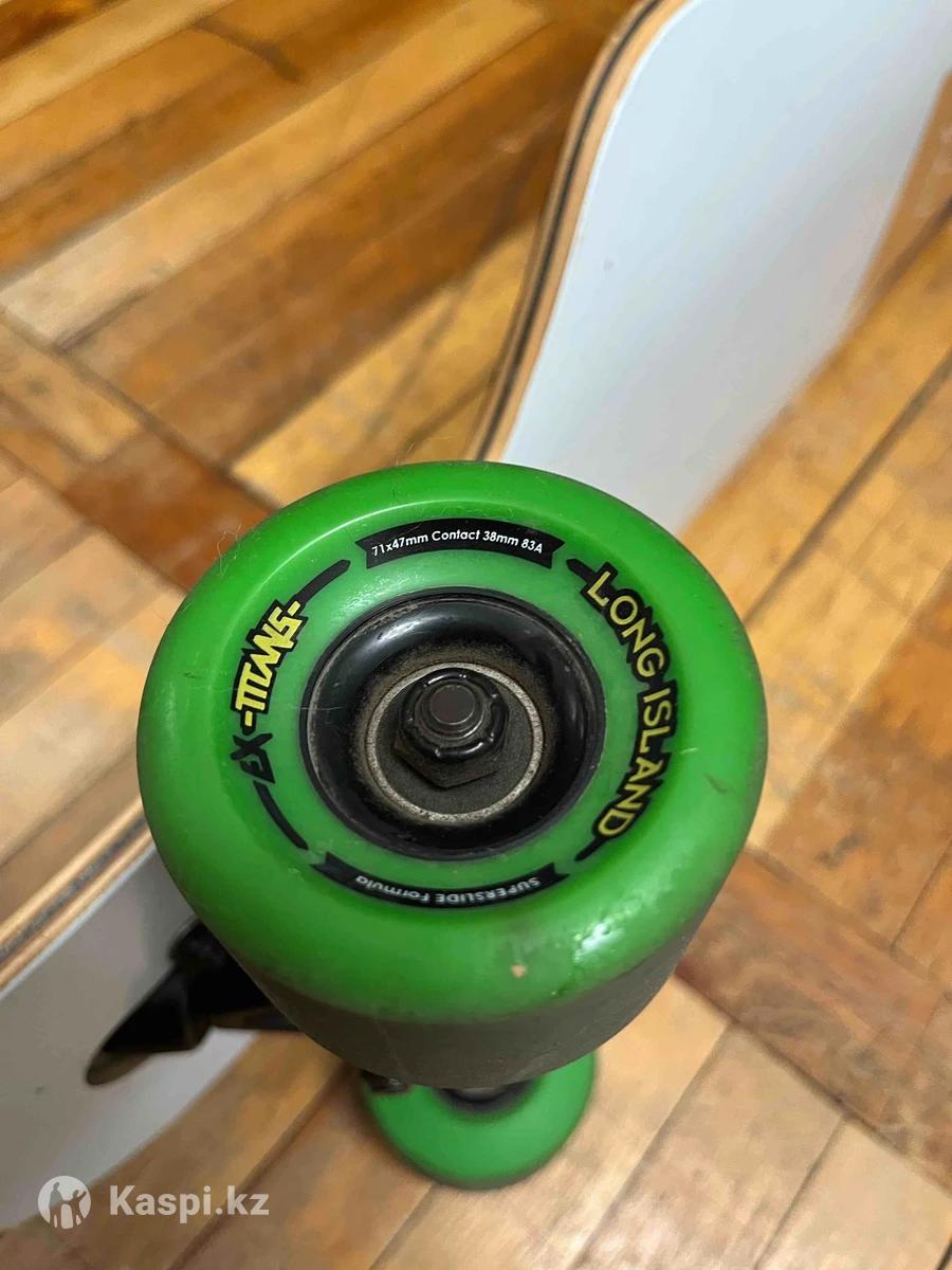 В продаже лонгборд от американского бренда Longisland. Технически в идеальном состоянии, следил и смазывал все вовремя. Присутствует небольшой винт на деке, по сути, не влияющий ни на что. Пробег не особо большой, в этом сезоне даже не выезжал, в прошлом году - пару раз. Присутствуют жизненные коцки.