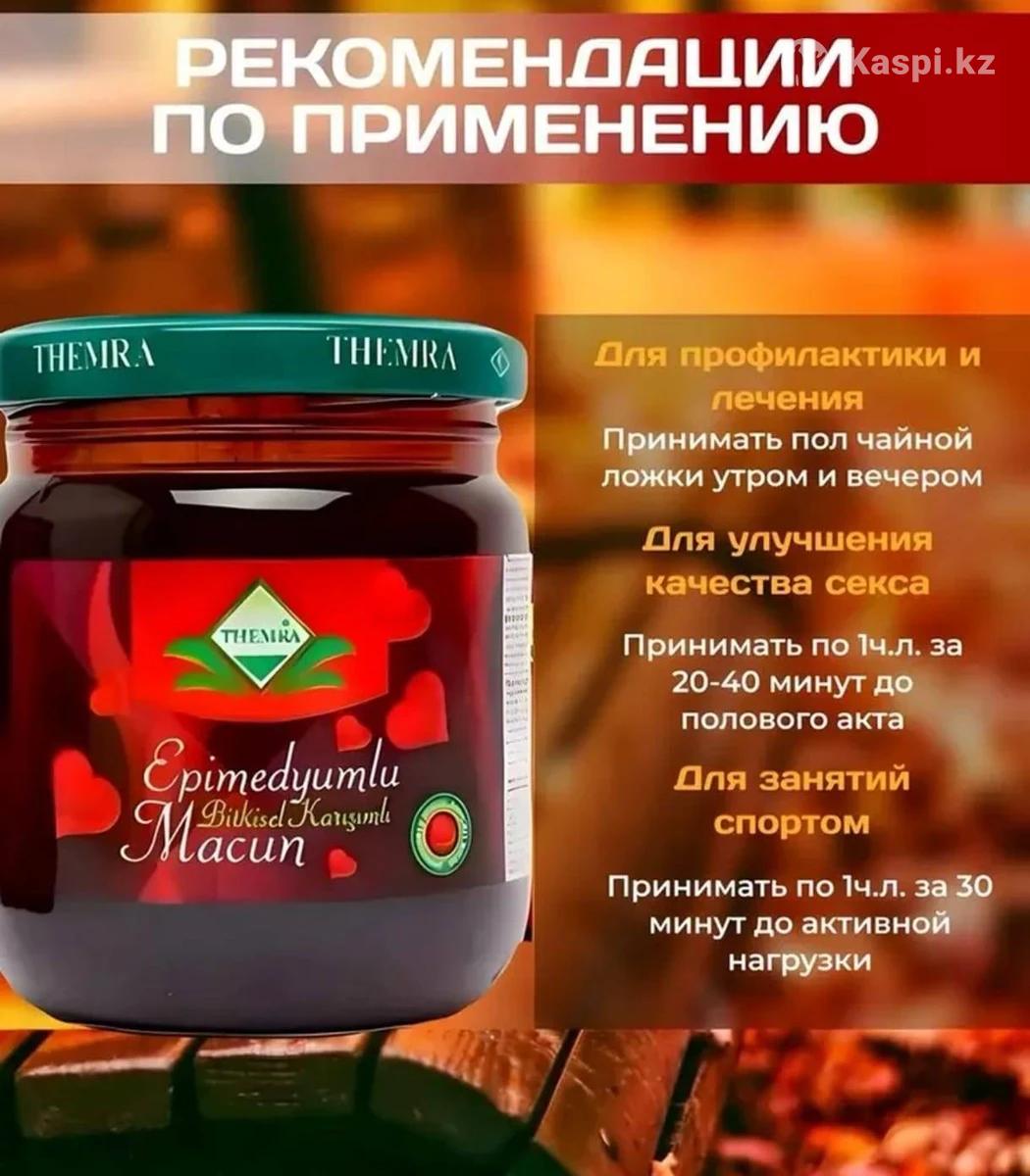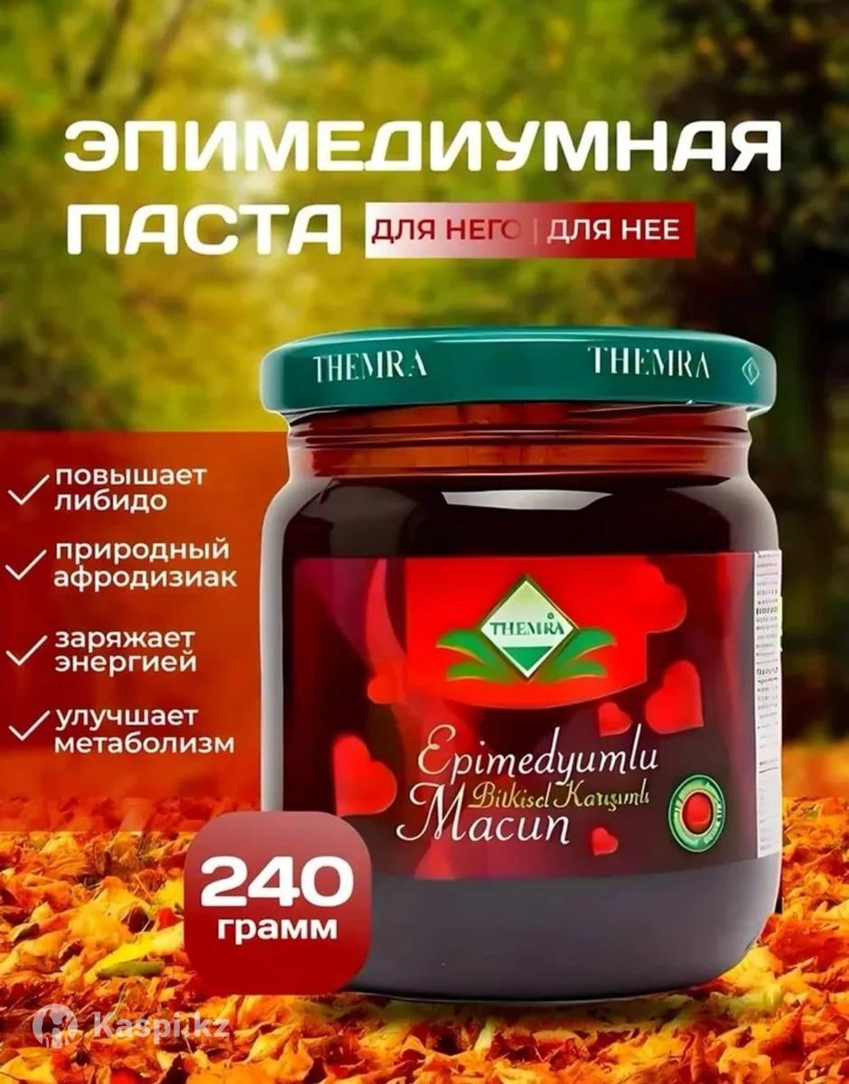 Доставка по рк Эпимедиумная паста применяется: Как общеукрепляющее средство, повышающая работоспособность. При длительном физическом и психическом переутомлении, неврозах, бессоннице. Способствует усилению выработки тестостерона, накоплению миоглобина в мышечной ткани, увеличивает мышечную силу и физическую выносливость. Нормализует артериальное давление, работу сердечно-сосудистой системы, стимулирует функцию кроветворения, выводит из организма токсины. Улучшает кровоснабжение головного мозга, является мощным стимулятором памяти, логического мышления, концентрации внимания. У мужчин: Повышает эрекцию, Продлевает половой акт Повышает чувствительность, Устраняет преждевременную эякуляцию, Увеличивает количества сперматозоидов, стимулирует их подвижность и плотность спермы. Улучшает циркуляцию крови и помогает сбалансировать кровяное давление. Рекомендован при аденоме предстательной железы и простатите. Улучшает состояние мочеполовой системы, функцию почек и предстательной железы. У женщин: Увеличивая секрецию желез, Освобождает гормон эстроген, Повышает либидо.Также применяется в качестве лечебного средства при нарушениях менструального цикла, бесплодии, воспалительных процессах в малом тазу, нарушении функций яичников, при мастопатии, гипофункции половых желез, воспалительных заболеваниях половых органов, в период климакса. Инструкция по применению: Перед каждым употреблением перемешивать содержимое в банке. Рекомендуется использовать деревянную или пластиковую ложку. Желательно употреблять через час после еды. Для укрепления организма принимать один раз в день пол чайной ложки. Для тех, кто проводит курс лечения принимать ежедневно по пол чайной ложки один раз в день. Для повышения сексуального либидо принимать за 30-40 минут до полового акта. Для занятия спортом принимать за 30-40 минут перед тренировкой. Максимальная разовая доза одна чайная ложка. Для повторного курса сделайте перерыв 7-10 дней.