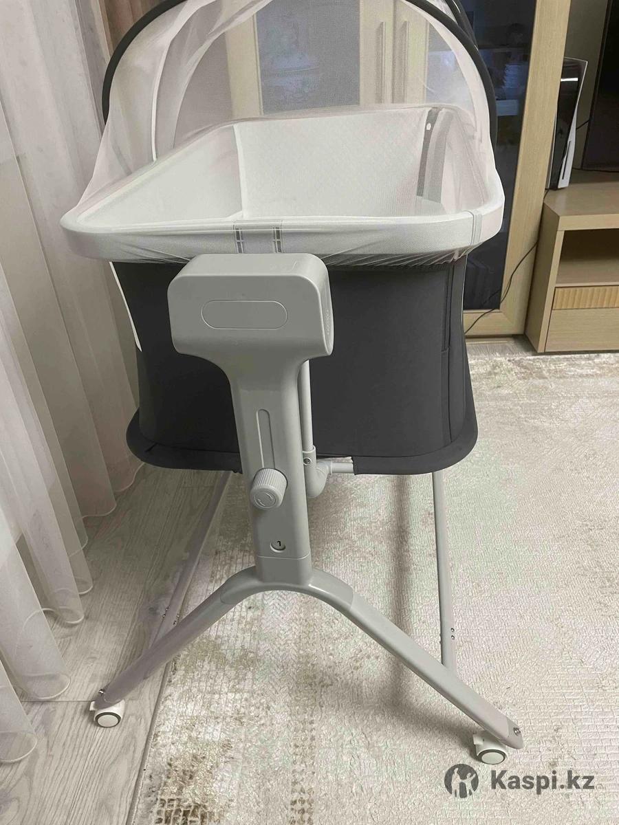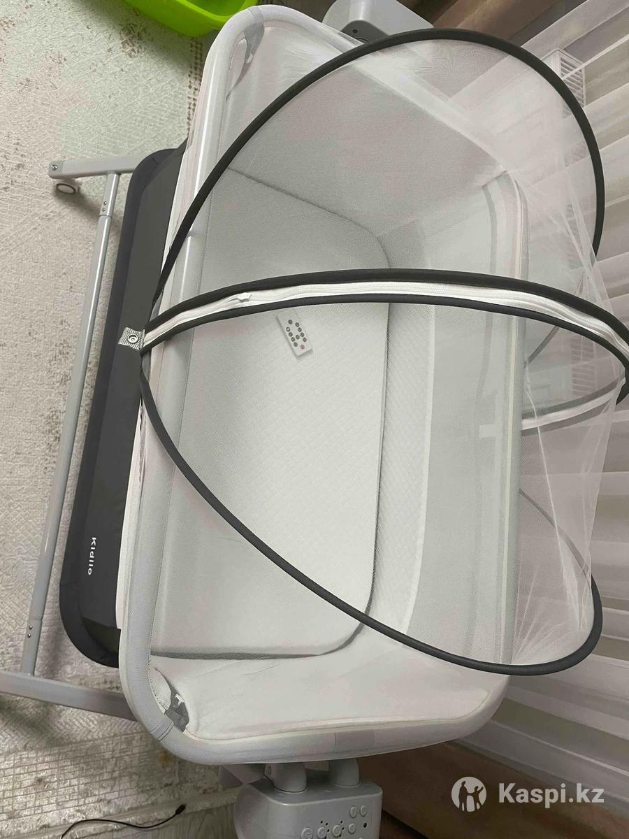 Продам абсолютно новую люльку на колесах, привезли из Алматы. В использовании не была, только собрали. Продаю так как нам не подошел размер, оказалось больше, чем думала. Здесь такие стоят от 65000 и выше. ТОРГ УМЕСТЕН. Высота регулируется, автокачание, есть пульт управления, москитка и полка снизу в комплекте. Полка есть просто ее не устанавливали перед фото