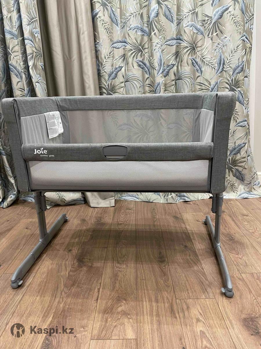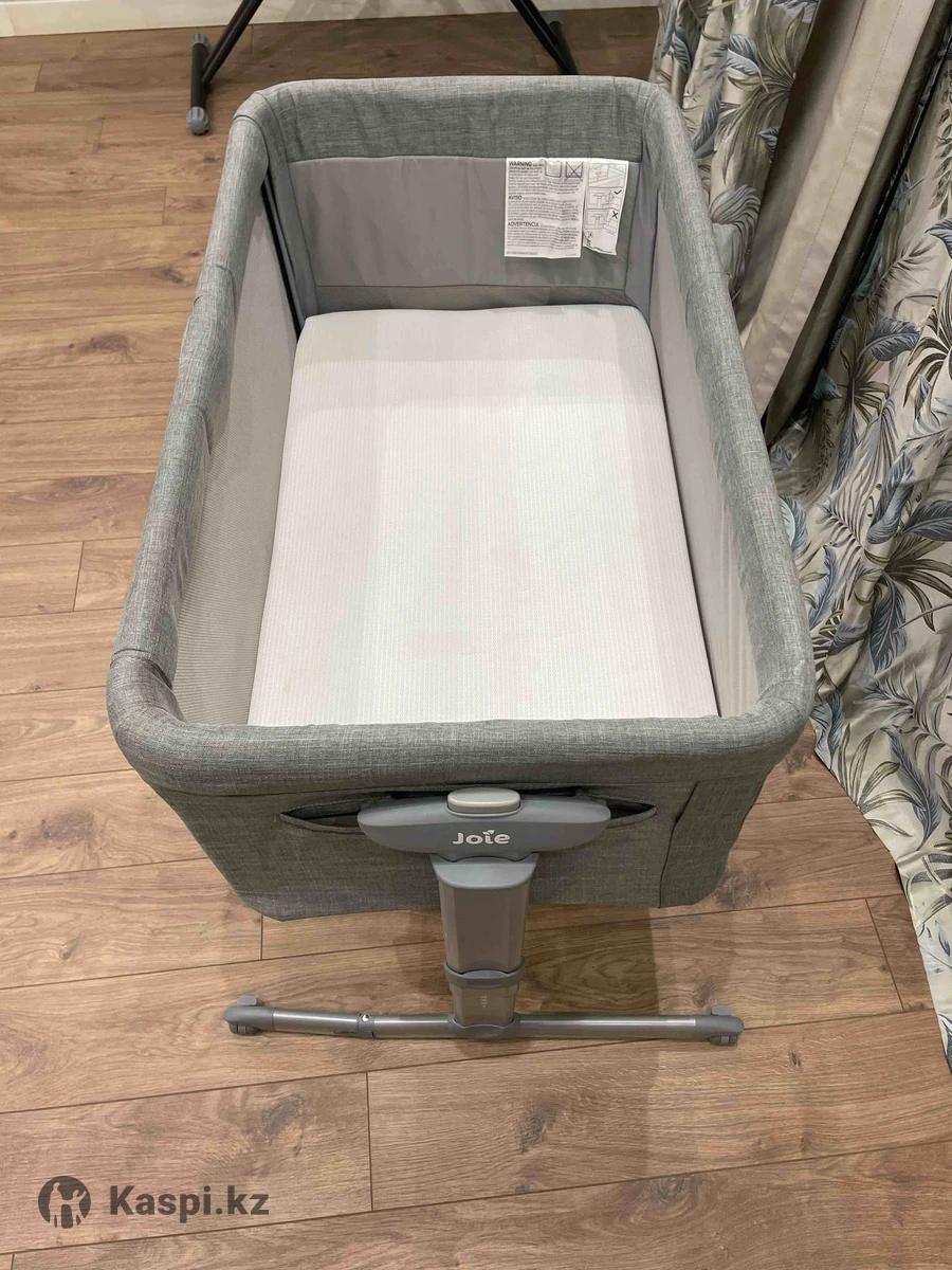 Люлька в идеальном состоянии. Покупали за 126000 тг. Манеж Joie Roommie Glide Foggy Gray. • Характеристики: Для детей с рождения до 9 кг. • Боковая панель опускается и поднимается (11 позиций высоты). • Укачивающий механизм с фиксацией для сна. • Мягкий матрас и вентилируемые сетчатые стороны колыбели. • Съемный чехол матраса легко постирать. • 10 позиций наклона кроватки для профилактики срыгивания. • 4 резиновых блокируемых по отдельности колеса. • Ножки кровати регулируются и встают вплотную к кровати. • Страховочный ремень крепится к матрасу родительской кровати.