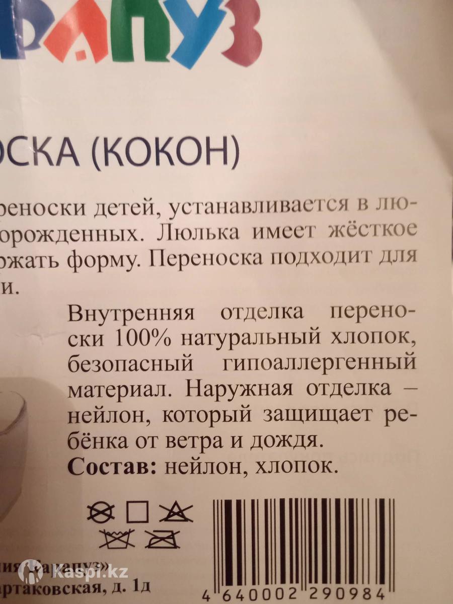 Абсолютно НОВАЯ Люлька-переноска Качество хорошее! Фирма Карапуз. Россия Цена 8800тг. Дешево.