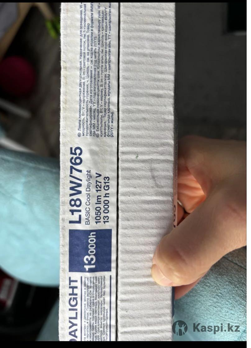 2 шт за 3000 тг люминесцентная лампа L18W/765 Basic Cool Daylight (Osram). Мощность: 18 Вт. Напряжение: 127 В, также может работать от 220 В в зависимости от схемы подключения. Цоколь: G13. Цвет свечения: Холодный дневной свет (Cool Daylight). Срок службы: 13 000 часов. Длина: 590 мм. Диаметр колбы: 26 мм.