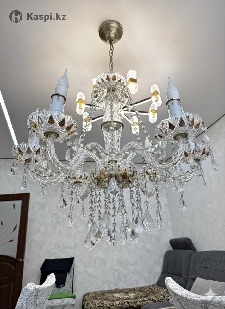 Хрустальная люстра с ночным режимом (шести рожковая) Продается изысканная хрустальная люстра, выполненная в классическом стиле. Основание и рожки изготовлены из прочного стекла с огранкой, украшены подвесками из прозрачного хрусталя, создающими красивые переливы света. Люстра оснащена шестью рожками под лампы в форме свечей, что придает интерьеру особый шарм и утонченность. Есть ночной режим освещения, который позволяет создать мягкий уютный свет в вечернее время. Подходит для гостиной, спальни или столовой, отлично смотрится в интерьерах с элементами классики или модерна. Характеристики: •Материал: хрусталь, металл •Количество рожков: 6 •Ночной режим: есть •Состояние: отличное, все элементы целые Эта люстра станет стильным акцентом вашего интерьера и подарит неповторимую атмосферу уюта и роскоши. Есть торг