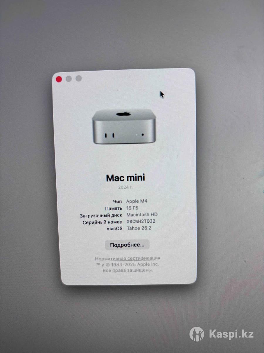 Продаю Mac mini M4 (2024) • Core 10 • 16 GB RAM / 256 GB SSD • Состояние отличное, все работает • Не сломан, без дефектов 📩 Звонить не нужно — пишите в