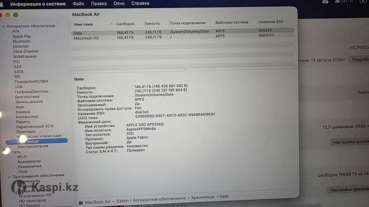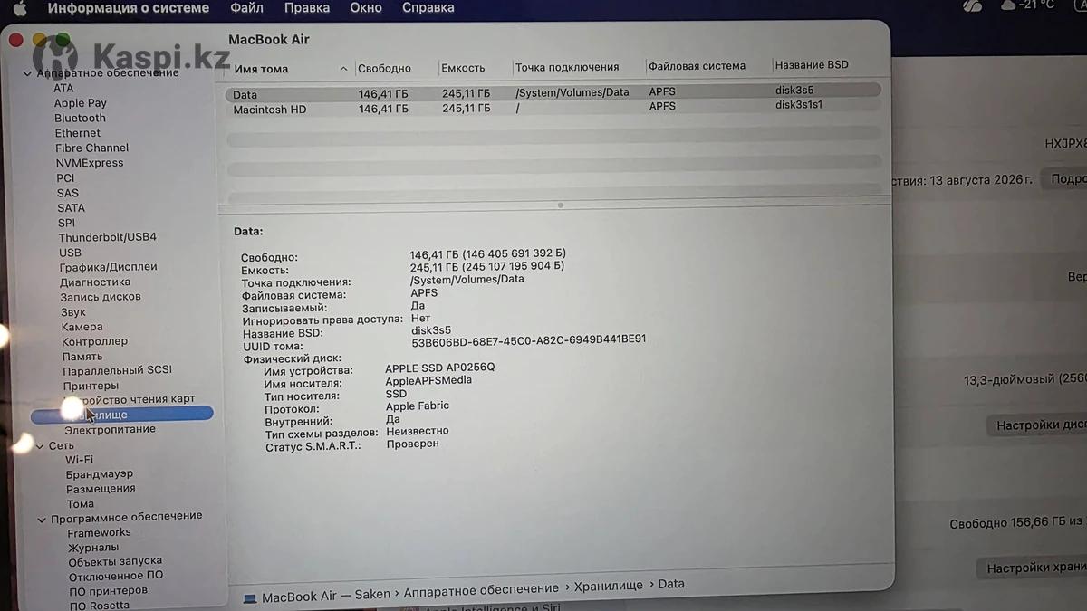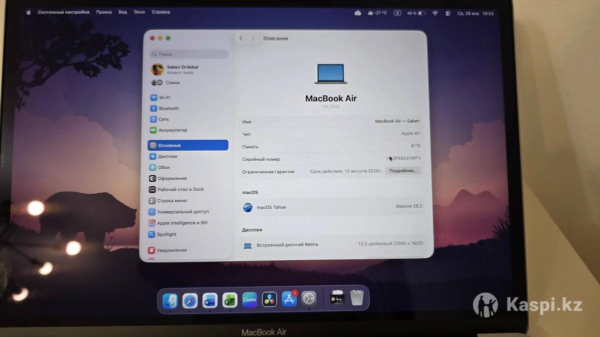 Macbook Air M1 8/256 Темно серый На гарантии до августа 2026 года Покупался в Sulpak Полный комплект Продажа в связи с переходом на другую модель В ремонте не был, все работает ном режиме