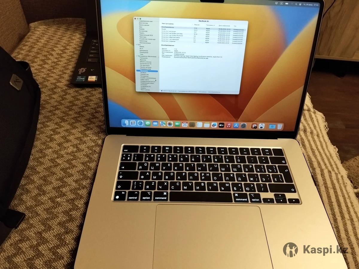 Состояние нового, не использовался, количество циклов зарядки - 6 раз (ёмкость аккумулятора 100%), куплен в ноябре 2025 года. Основные характеристики Процессор: Чип Apple M2 (8 ядер CPU / 10 ядер GPU). Дисплей: 15.3 дюйма, Liquid Retina. Батарея: До 18 часов работы. Это один из самых «живучих» макбуков. Охлаждение: Пассивное (без вентиляторов). Он абсолютно бесшумный. ✅ Плюсы (почему его стоит брать в 2026 году) Экран: По размеру почти как у 16-дюймовой «прошки», но ноутбук гораздо легче и тоньше. Звук: Система из 6 динамиков с приличным басом (лучше, чем у 13-дюймовых моделей). Тачпад: Огромный и очень точный. Зарядка MagSafe: Магнитный разъем освобождает два порта USB-C для периферии.