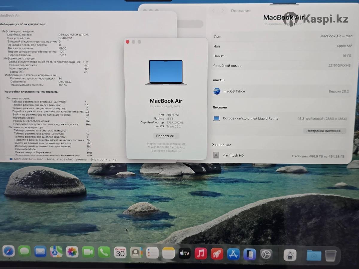 Apple MacBook Air 15 M2 16/512 в цвете Space Gray. МакБук в отличном состоянии, аккумулятор 100% (34 цикла). В комплекте сам МакБук и оригинальное зарядное устройство, коробки нет. Обмен не интересует, торг на дорогу.