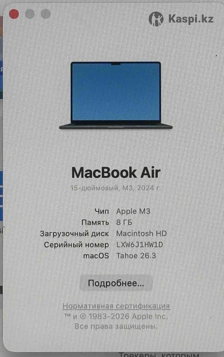 MacBook 15 M3 2024 8/256 Полный комплект На фото видно маленький коцык остальное идеал