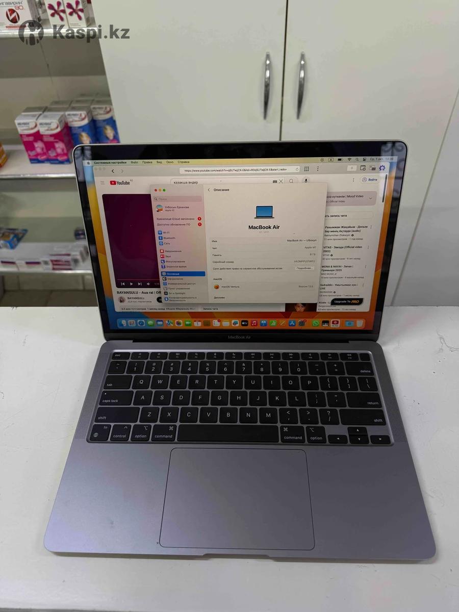 MacBook Air M1 (2020) •Чип: Apple M1 •ОЗУ: 8 ГБ •Экран: 13.3” Retina (2560×1600) •Память: 256 ГБ •macOS Ventura (13.5) •Отличное состояние, полностью рабочий