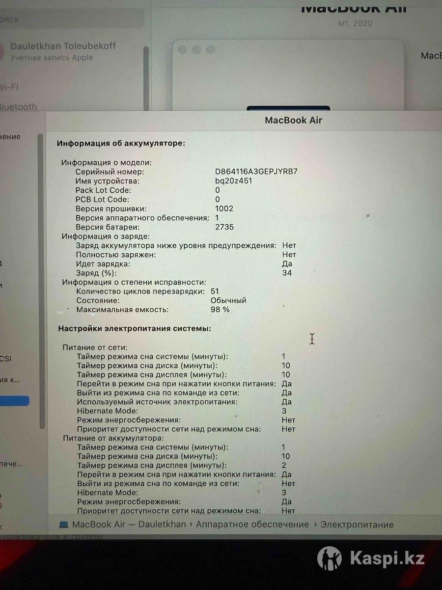 MacBook Air m1 A2337. В идеальном состояние, аккумулятор 98%, цикл заряда 51 , в чехле, никаких царапин нет, продам срочно, деньги нужны